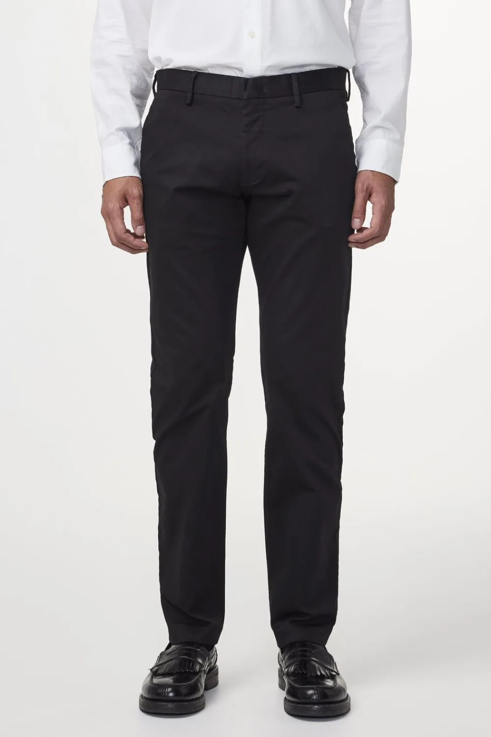 Theo er en chino i hjertet, men med de formelle elementer i en kjolebuks. Den er fremstillet i BCI-fremstillet børstet bomuld fra den italienske mølle Progetto Uno. Disse alsidige bukser med mellemhøj talje har en indsnævret pasform. Den er afsluttet med en skarp fold ved benet og usynlig oplægning
