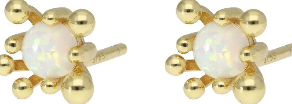 Earstuds i 24k Gold Plated Recycled Sterling Silver 925 og Opal.