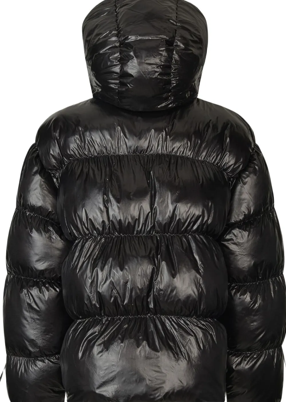 Pufferjakke med hætte. Fremstillet med Recycled polyamid og polstret fyld. De har en høj krave med stolpelukning, skjult lynlås og trykknaplukning foran. Aftagelig hætte, der fastgøres med lynlås, og to skjulte sidelommer. Elastisk snøre med stoppere i taljen og nederst på ærmerne og elastiske manchetter. Fuldt foret. Løs pasform med en voluminøs silhuet, der kan trækkes ind med snoretræk