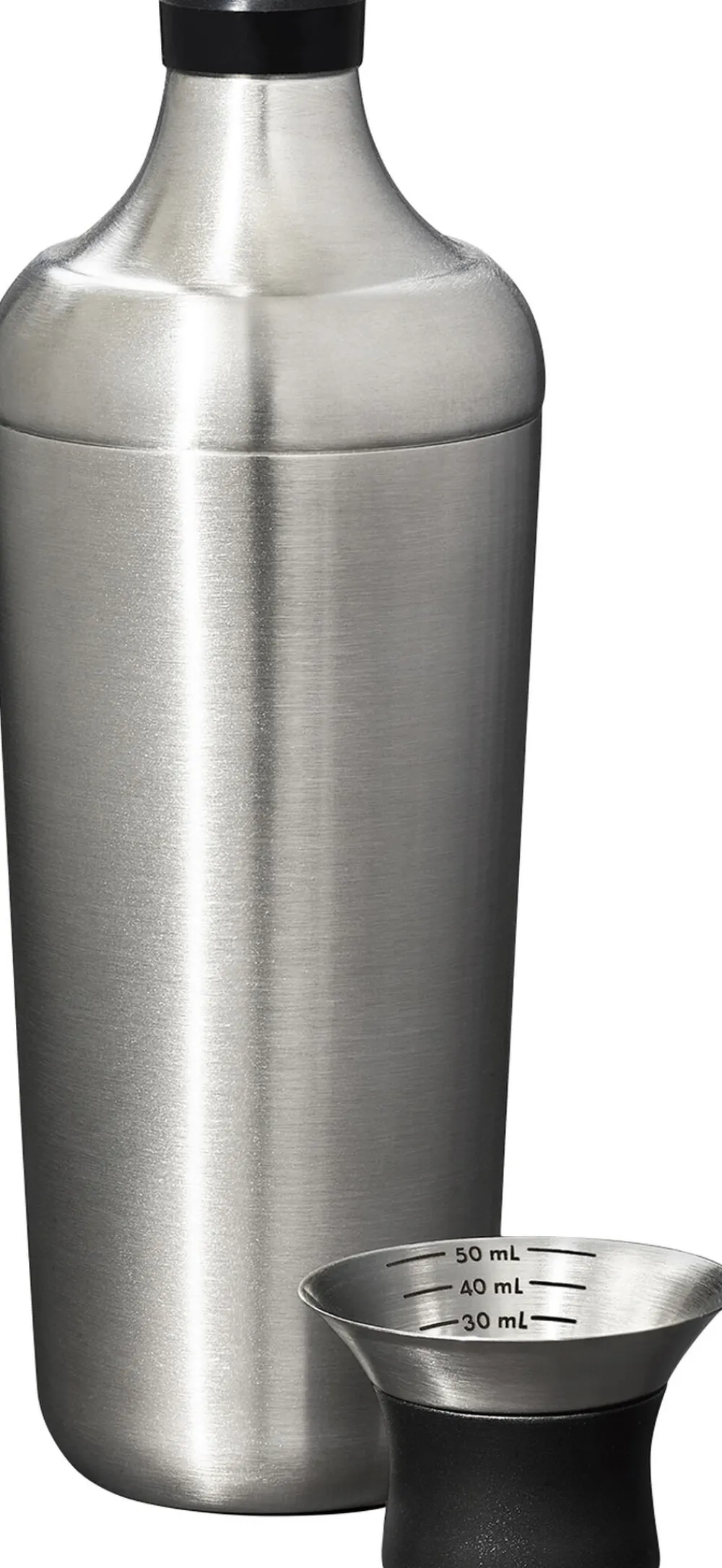 Den elegante Cocktail Shaker fra OXO i single wall rustfrit stål er et must i enhver hjemmebar. Shakeren har en volume på 700 ml. I toppen finder du låget med indbygget målebæger med mål på 15, 30, 40 og 50 ml. De to silikonepakninger forhindrer lækage når du ryster shakeren og den indbyggede si filtrerer dine drinks, så du opnår perfekte cocktails hver gang. Opmål, bland og server dine drinks og cocktails med stil med OXOs Cocktail Shaker.