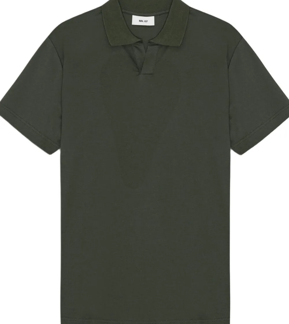 Polo med åben krave skabt i økologisk bomuldsjersey med gennemgående dobbelte nålestingssøm.