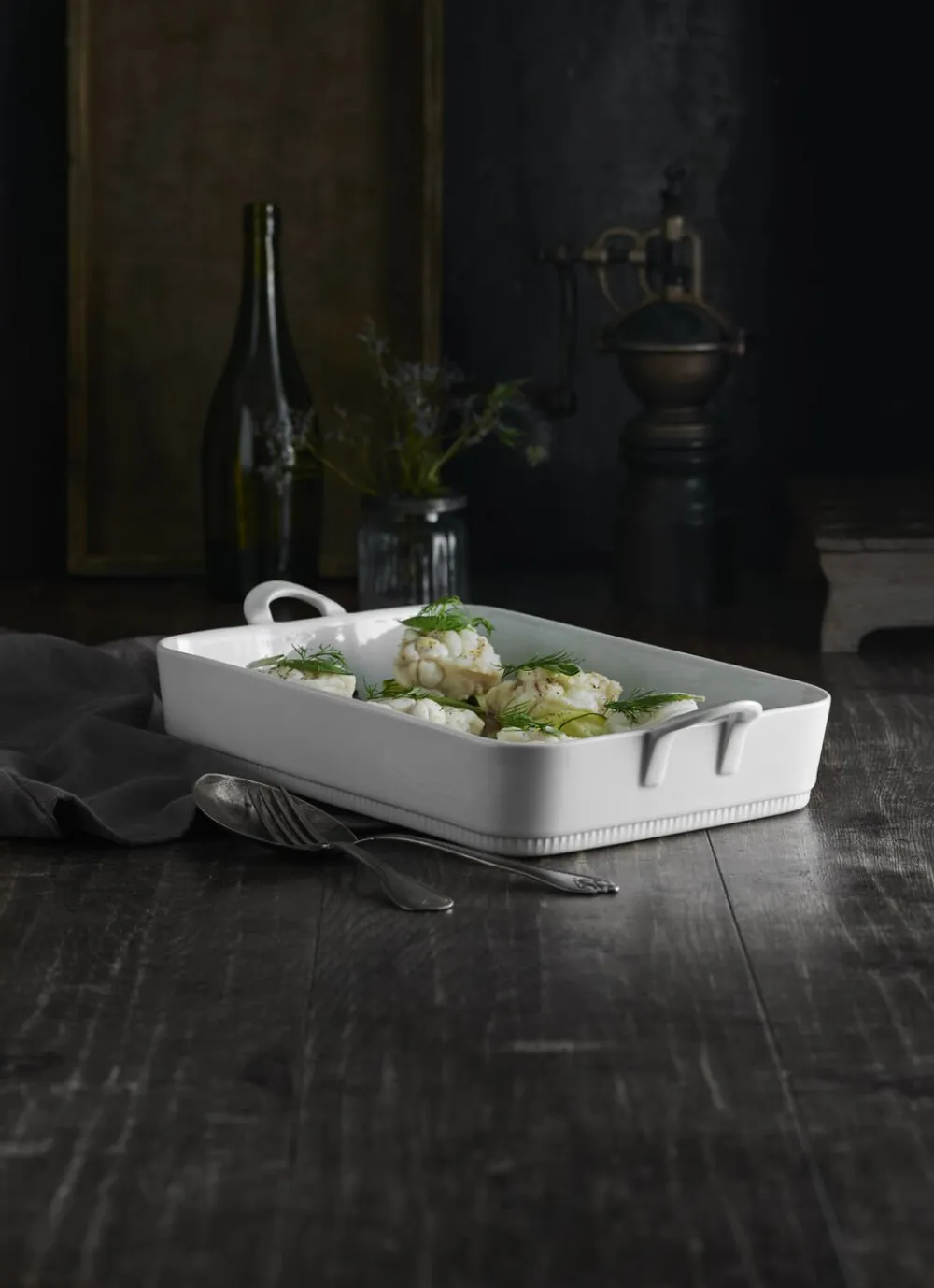Stort og flot rektangulært fad på 34 x 24,5 cm med håndtag til ovnretter og servering.