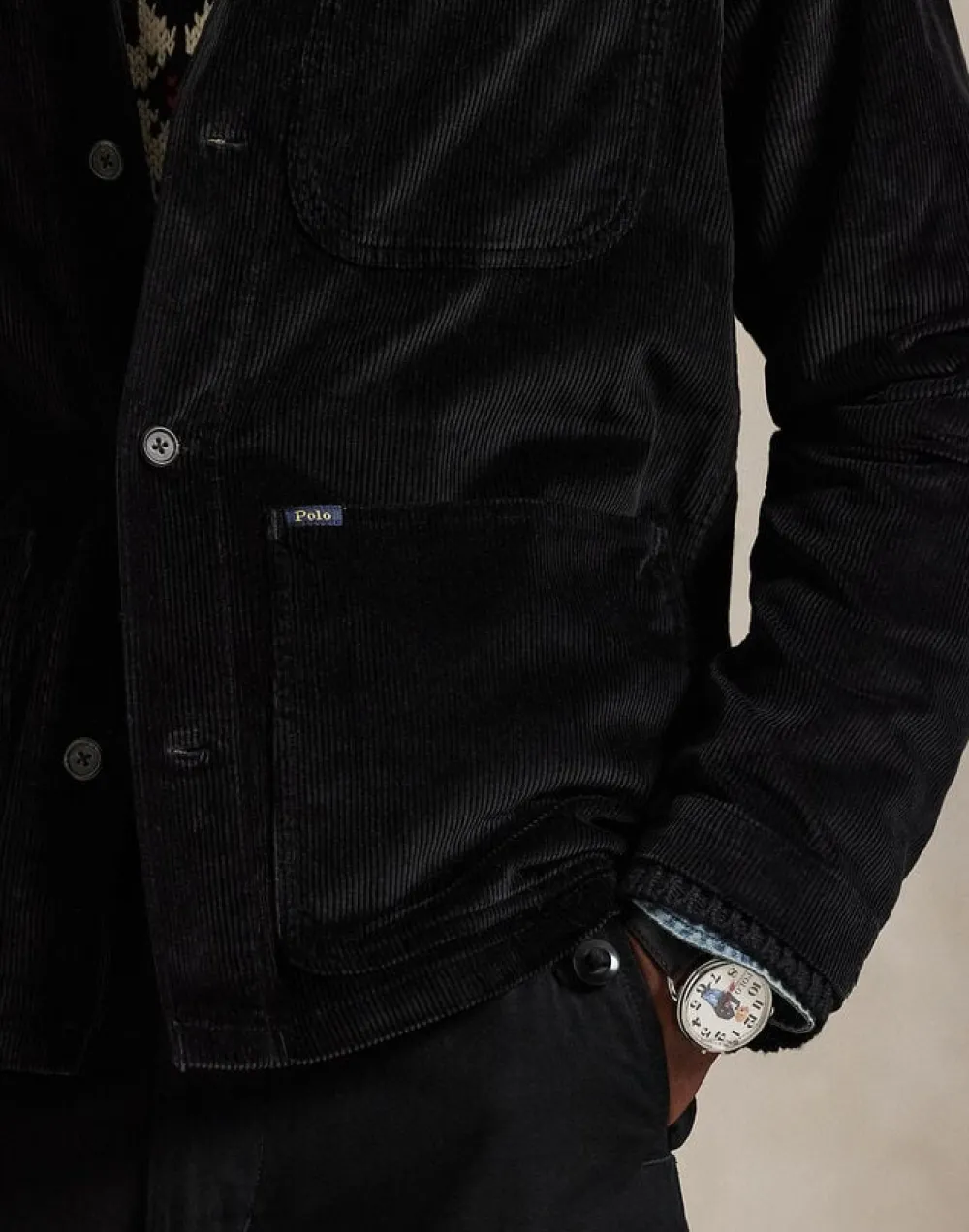 Fløjl med brede vinkler forbedrer den rå natur af dette lags arbejdstøjsinspirerede silhuet