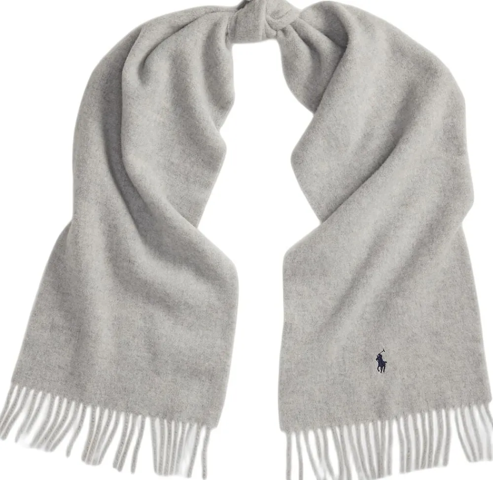 Polo Ralph Lauren Fringe-Trim Wool Scarf Grey Sale