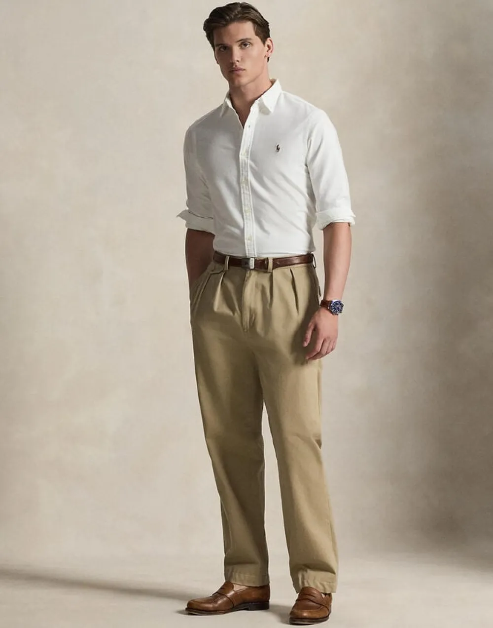 Oxford-skjorten debuterede tidligt i Ralph Laurens designs, og siden da har den cementeret sin status som en grundpille i Polo-stilen. Vores stof er udviklet med en hemmelig vask, der giver det øjeblikkelig karakter, lethed og en meleret blødhed. Formlen er så unik, at den har været opbevaret i en bankboks i mere end tre årtier. Udover detaljer, der vækker minder om prep-school inspirationen, giver den en afslappet følelse, som skaber det, vi kalder den perfekte “rynkeffekt.” I dag fortsætter Mr. Lauren med at skabe utallige variationer af sin ikoniske skjorte, inklusive denne slanke version, som er afsluttet med vores karakteristiske Pony.