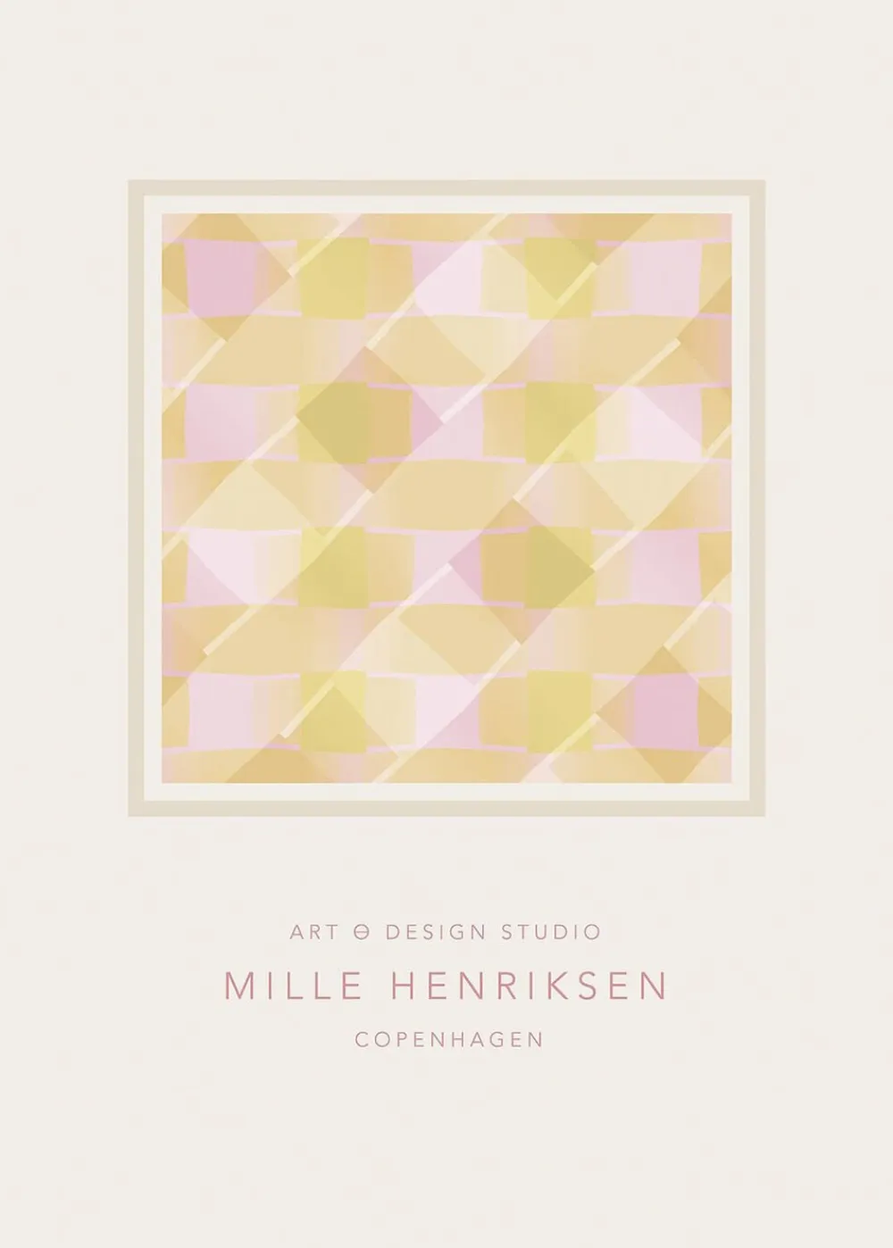 Københavns baserede grafiske designer og kunstner. Jeg nyder at eksperimentere med former, farver og teksturer, og min udtryksmåde ligger i de forskellige områder mellem det enkle og det flerlagede.Derfor finder du en stor variation i mit arbejde, der omfatter trykte samlinger, malerier og unikke genstande.”” – Mille Henriksen *Bemærk at rammer sælges separat.