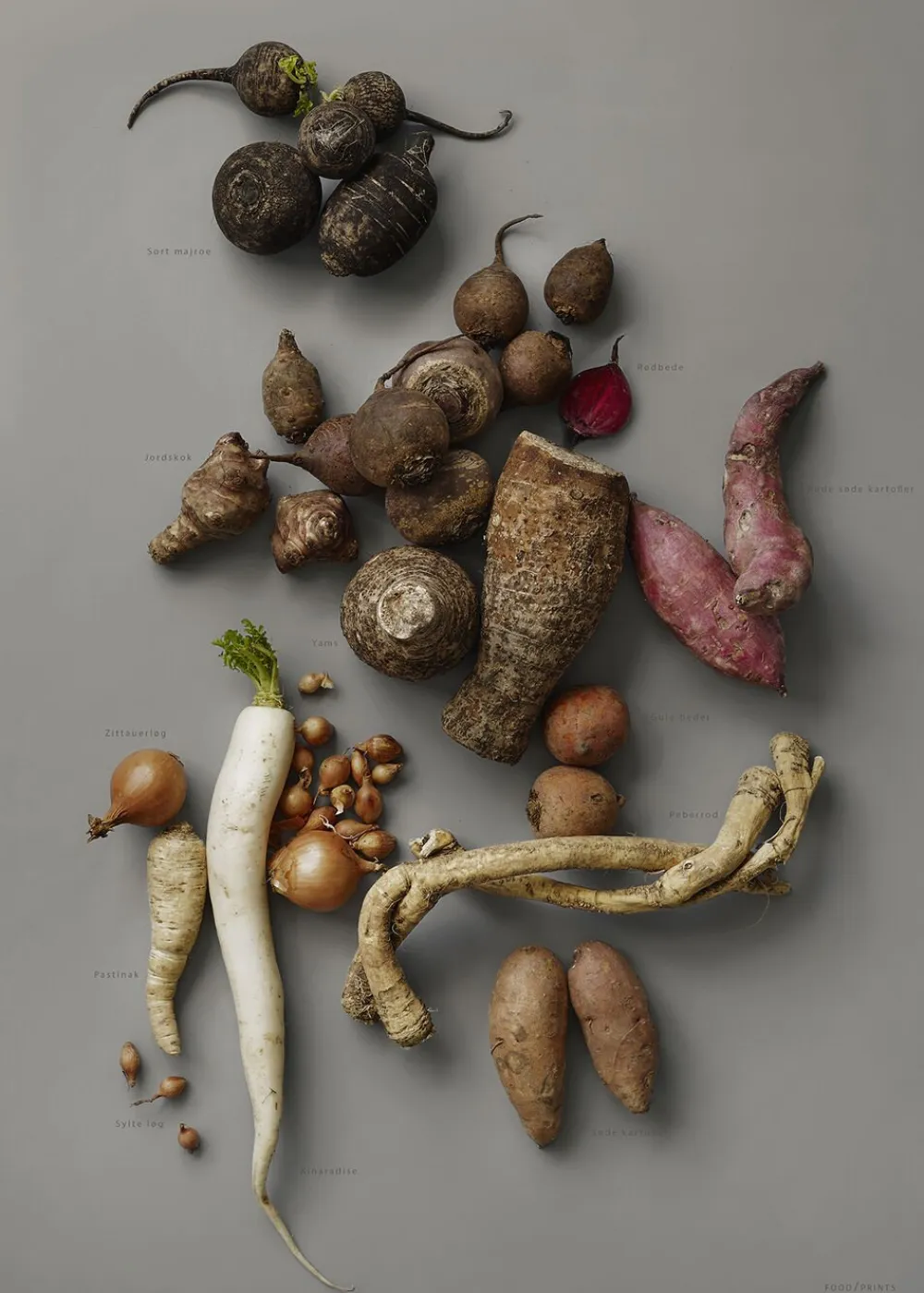 MAD/PLAKAT er fotografiske eller grafiske billeder af forskellige råvarer, oftest økologiske eller biodynamisk dyrket. Motiverne er Plancher med navne på frugt og grønt, Stilleben opsætninger, eller et bredt udvalgte af enkelt vækst-motiver fra planteriget. Vi lægger vægt på at lade væksterne stå naturligt frem, vise dem som de er i deres naturlige uperfekthed og derved fremhæve naturens eget viltre udtryk. Til daglig benytter vi os af naturens goder til at brødføde os selv og vores nærmeste, men hvor ofte stopper vi op og ser på unikheden i de vækster som er vores næring. Alle planter har været liv i sig, alle kommer af en vækst som er vokset frem af vores fælles jord. Med plakatmotiverne fra MAD/PLAKAT tydeliggør vi madens udspring i planteverdenen og derved forbundenhed med hele klodens natur.