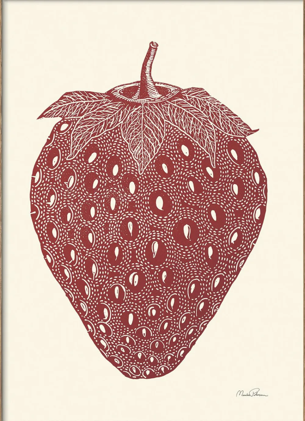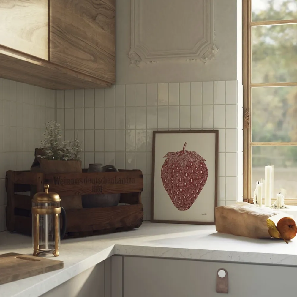 Bring sommerens sødme ind i dit hjem med denne smukke plakat, der præsenterer et detaljeret motiv af en jordbær. De fine linjer og den dybe røde farve fanger frugtens friskhed og fylder rummet med en varm og indbydende atmosfære. Perfekt til køkkenet, spisestuen eller ethvert sted, hvor du ønsker at tilføje et strejf af naturens lækkerier til din indretning. *Ramme sælges separat.