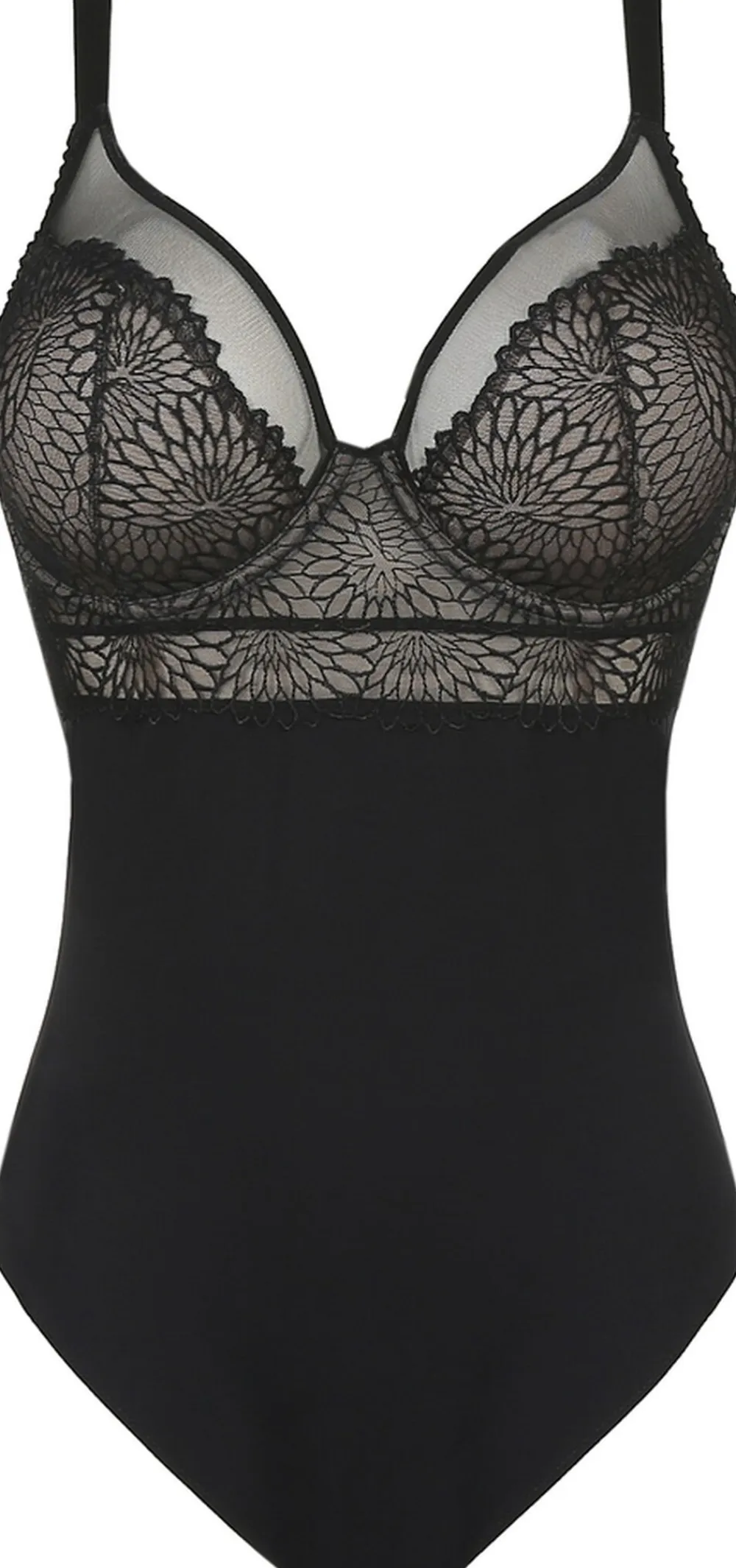 Wau … En super elegant bodystocking med “”long line effekt”” da det smukke broderi går ned under barmen. Sort broderi på tyl giver stilfulde detaljer, og i denne body opnår du det perfekte fit fra en PrimaDonna bh – g støtte på kroppen, som også får dit tøj til at sidde pænere. Bagdelen på bodyen er med usynlig afslutninger, så den er helt usynlig under dit outfit. Serien Sophora findes altid i elegante sæson farver, men hold nu op hvor er den også smuk i sort. I serien findes også smukke bh´er og flere varinater af trusser