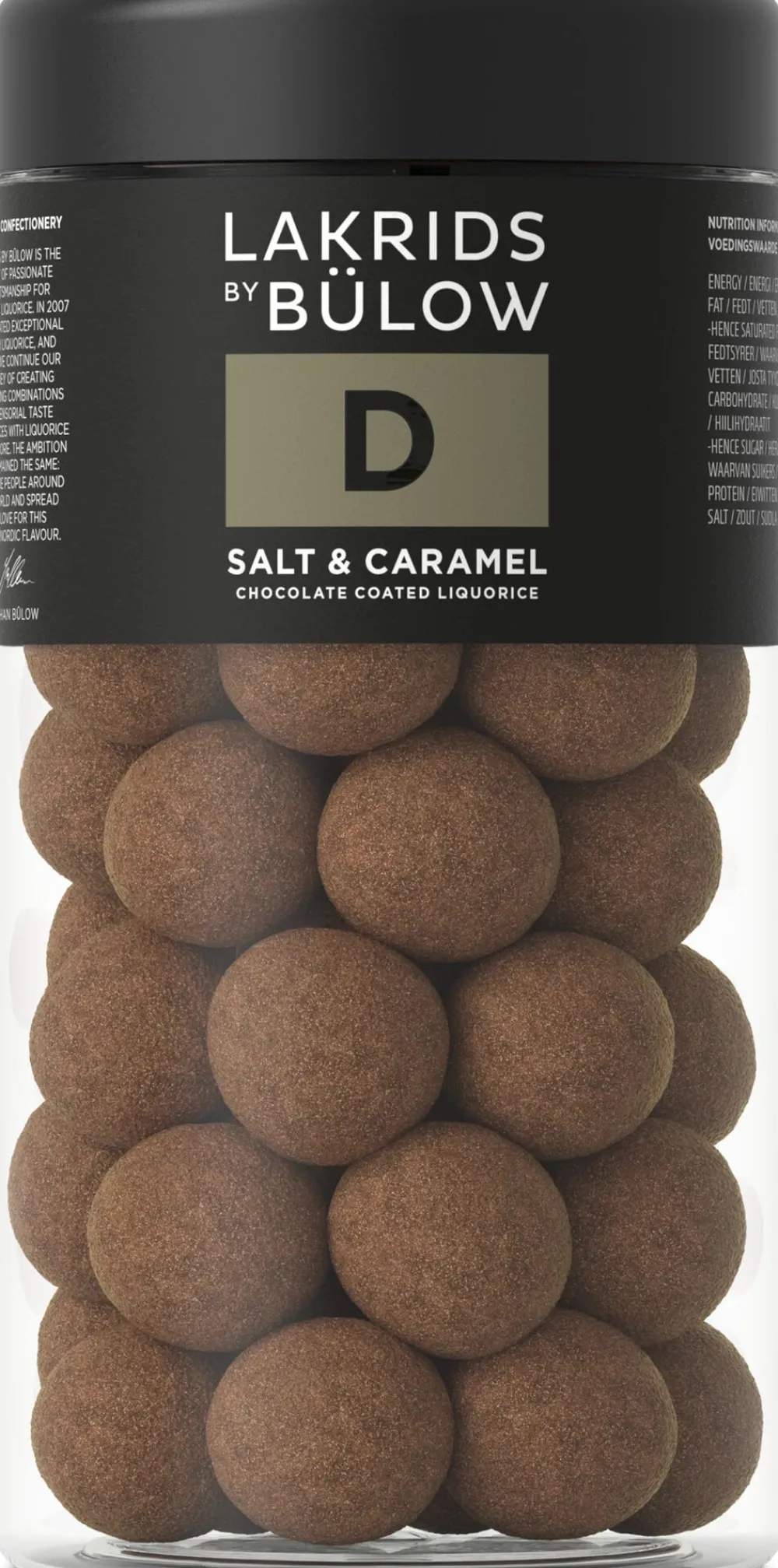 Vi advarer på forhånd om, at lakrids kombineret med karamel og havsalt er en uimodståelig smagsoplevelse. Vi har drageret en kerne af sød lakrids i karamelliseret dulcechokolade og tilsmagt med knasende flager af havsalt. Du kan ikke nøjes med at spise én lakrids D – SALT & CARAMEL. Det kan simpelthen ikke lade sig gøre.