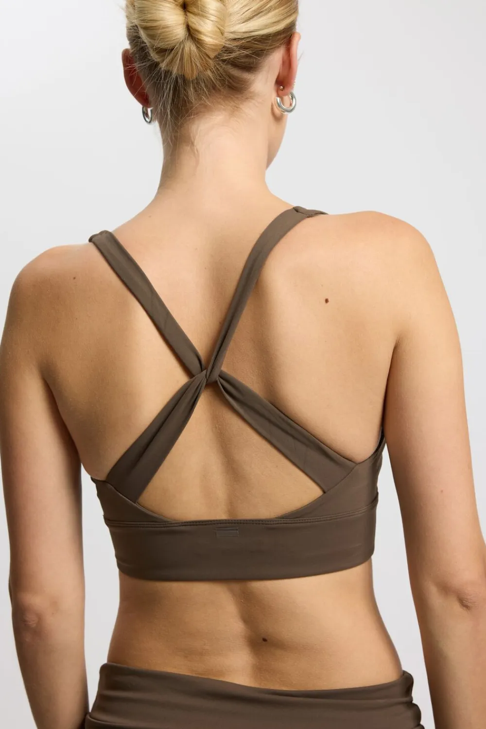 Sports-bh med krydsede stropper og udtagelige indlæg. Den har en bred linning med elastik indvendigt for god komfort. Sports-bh’en er lavet af superblødt og strækbart materiale, der er behageligt at have på og bevæge sig i – hele dagen lang. Det tidløse Design gør den til en sand hverdagsfavorit og giver støtte under din træning.