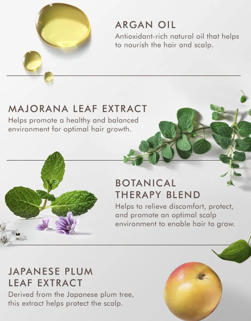 -Sød merianekstrakt har beroligende egenskaber og hjælper med at fremme en afbalanceret hovedbund for en optimal hårvækst.