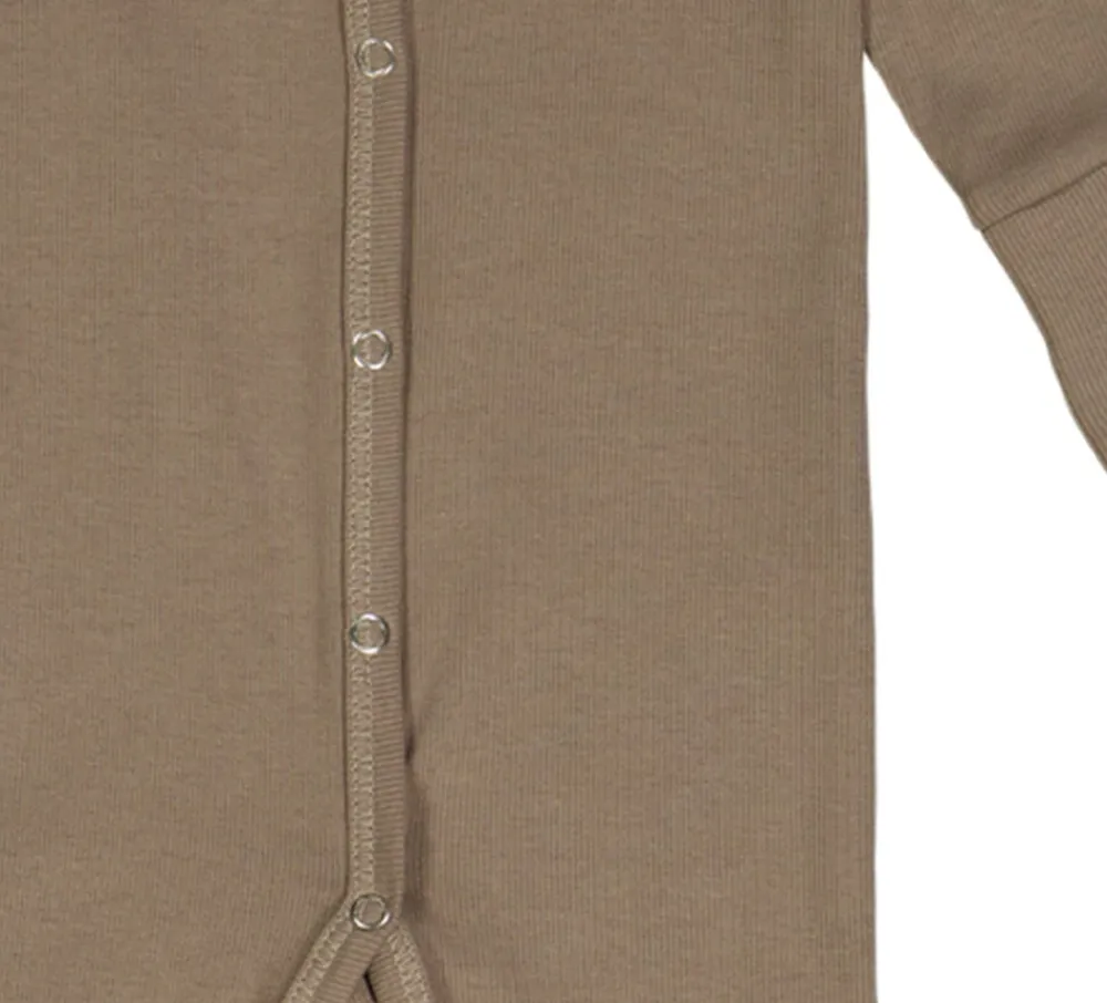 Skøn heldragt i blød blød rib kvalitet. Heldragten lukkes fortil med tryklåse og har vendbare fødder og hænder. Dragten er perfekt til de små for at sikre at de ligger lunt og trygt. De vendbare fødder og hænder kan foldes efter behov. Denne heldragt er fremstillet fra str. 44-74 og passer derfor til meget små babyer. Fremstillet i blød bomulds-rib med elastan for bedst mulig pasform. (GOTS Organic Certified by Ecocert Greenlife Lic. No. 152033). Produktet er GOTS organic- certificeret, hvilket betyder at bomulden er certificeret økologisk, og at der i alle andre processer som farvning, strikning og syning er taget de strengeste hensyn til miljøet. GOTS er internationalt anerkendt som den førende standard for forarbejdning af tekstiler af økologisk bomuld. Derudover tages der også hensyn til arbejdsforholdene, hos dem der producerer tøjet. Økologisk bomuld 95%, Elastan 5%
