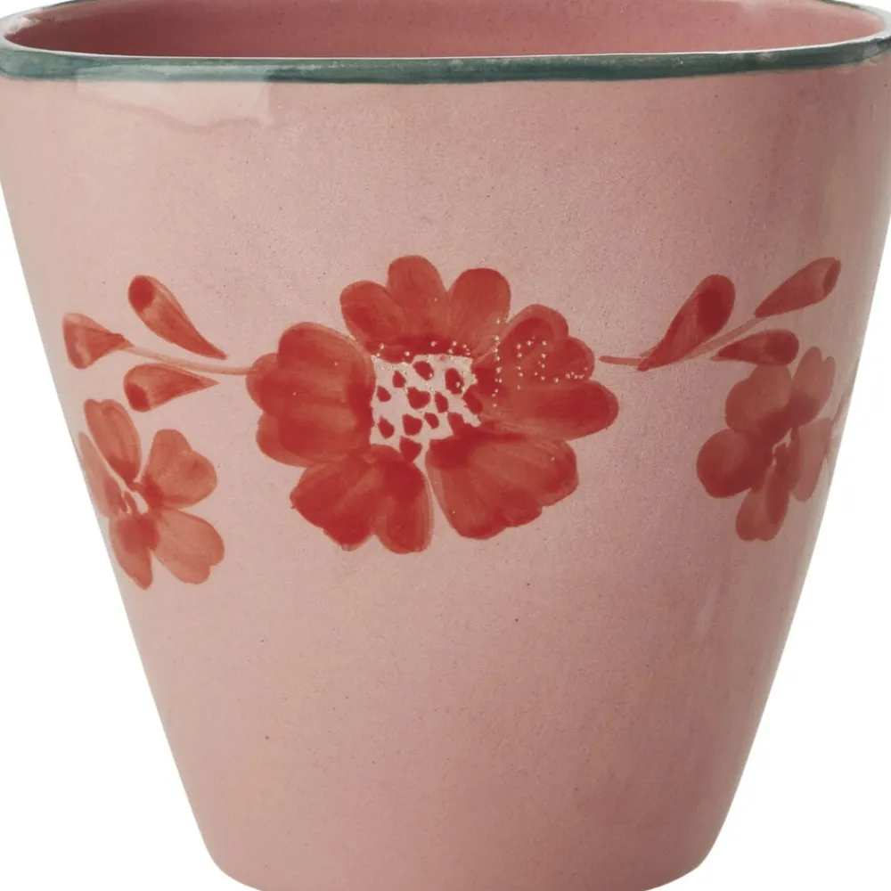 Start dagen med din morgenkaffe i dette ovale rosa krus af keramik med smukke, orange blomster. Koppen er håndmalet af en gruppe skønne portugisiske kvinder, hvilket gør hver enkelt kop helt speciel.