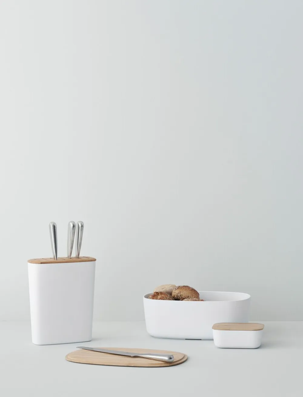 Den smarte og stilfulde BOX-IT brødkasse passer i de fleste køkkener og hjælper med at holde dit brød friskt i længere tid. Brødkassen, der er designet af de tyske designere Jehs & Laub er fremstillet i PBT plast, og låget i bambustræ fungerer også som et skærebræt. Kombiner brødkassen med smørboksen i samme design.