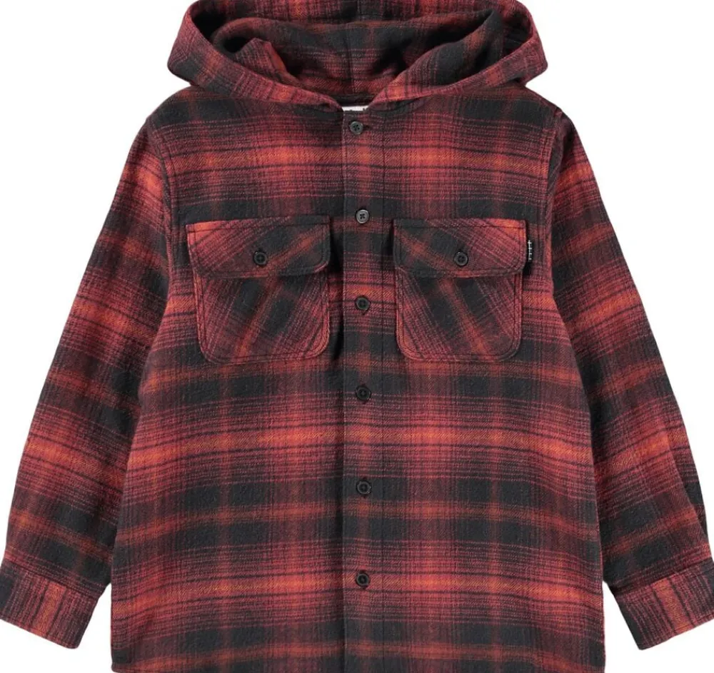 Denne sorte- og rødternede overskjorte fra Molo er lavet i bomuld og har en hætte, lange ærmer, sorte knapper, to brystlommer og en almindelig pasform.
