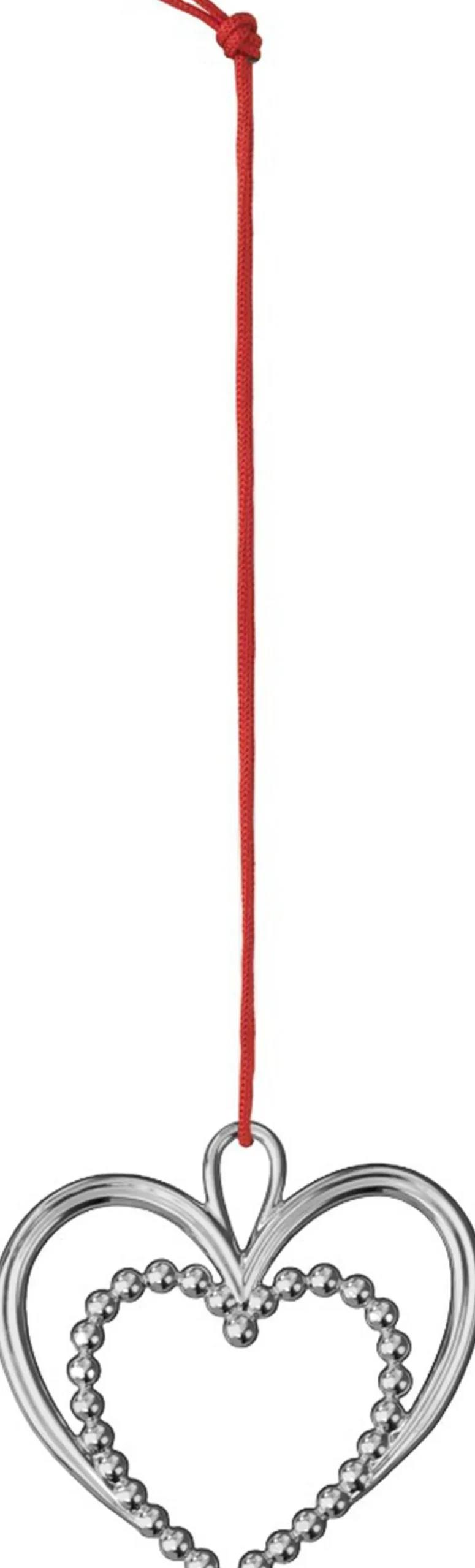 Klassisk julepynt med kunstnerisk kant. Rosendahls Karen Blixens Jul er for mange indbegrebet af den hyggelige og traditionelle jul fuld af historie og julesymbolik, der får juleglæden til at holde helt indtil juleaften. Ole Kortzau lavede sin første Karen Blixen-julepynt tilbage i 2007. Og hvert år kommer der nye ophæng til i den særlige håndlavede kvalitet skabt med omhyggelighed og øje for detaljen i en sådan grad, at hvert enkelt ophæng fremstår som et lille kunstværk i sig selv, belagt med ægte sølv og guld. 2025-kollektionen indeholder blandt andet dette forsølvede perlehjerte, der yndigt og svævende tilføjer den magi til december, der gør juletiden til noget helt særligt. Perlehjertet er inspireret af følelsen af at tage en ægte perlehalskæde frem til højtiden og fortolket som julepynt en elegant og feminin hyldest til kærligheden og et ikonisk symbol på skønheden og det smukke og hjertelige samvær i juletiden. Ophænget måler 6,5 cm i højden og fungerer både alene og sammen med de andre små ophæng i serien perfekt som både vinduespynt og på juletræet. Motiverne i Karen Blixens Jul er ofte en kærlighedserklæring til børnenes perspektiv på julen. Men selvom Ole Kortzaus julehistorier tager udgangspunkt i virkeligheden, så er de ikke virkeligheden. Derfor er der også altid lige puffet lidt til motiverne. De er altid lidt skæve, lidt underfundige. Ole Kortzau vil have os til stoppe op, tage en pause og nyde de særlige øjeblikke og opdage alle de klassiske karakterer på en anden måde. Dette juleophæng leveres med en fin rød snor.