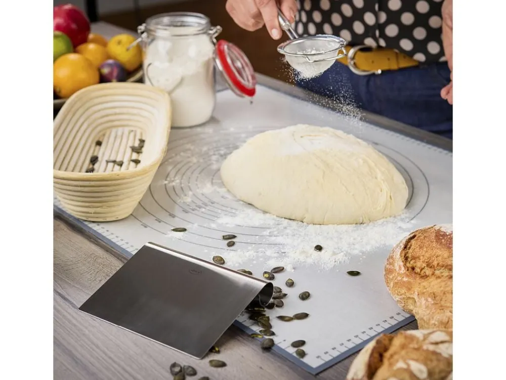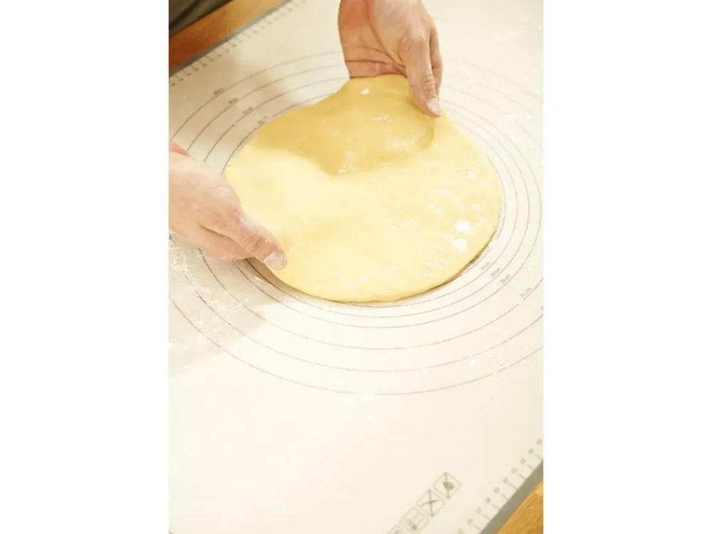 Fleksibel bagemåtte i en god størrelse til forberedelse og bagning. Fremstillet i slidstærk silikone, der står skridsikkert på bordet. Tåler temperatur op til +230 °C. Nem at opbevare sammenrullet. Tåler opvaskemaskine. (R12465)