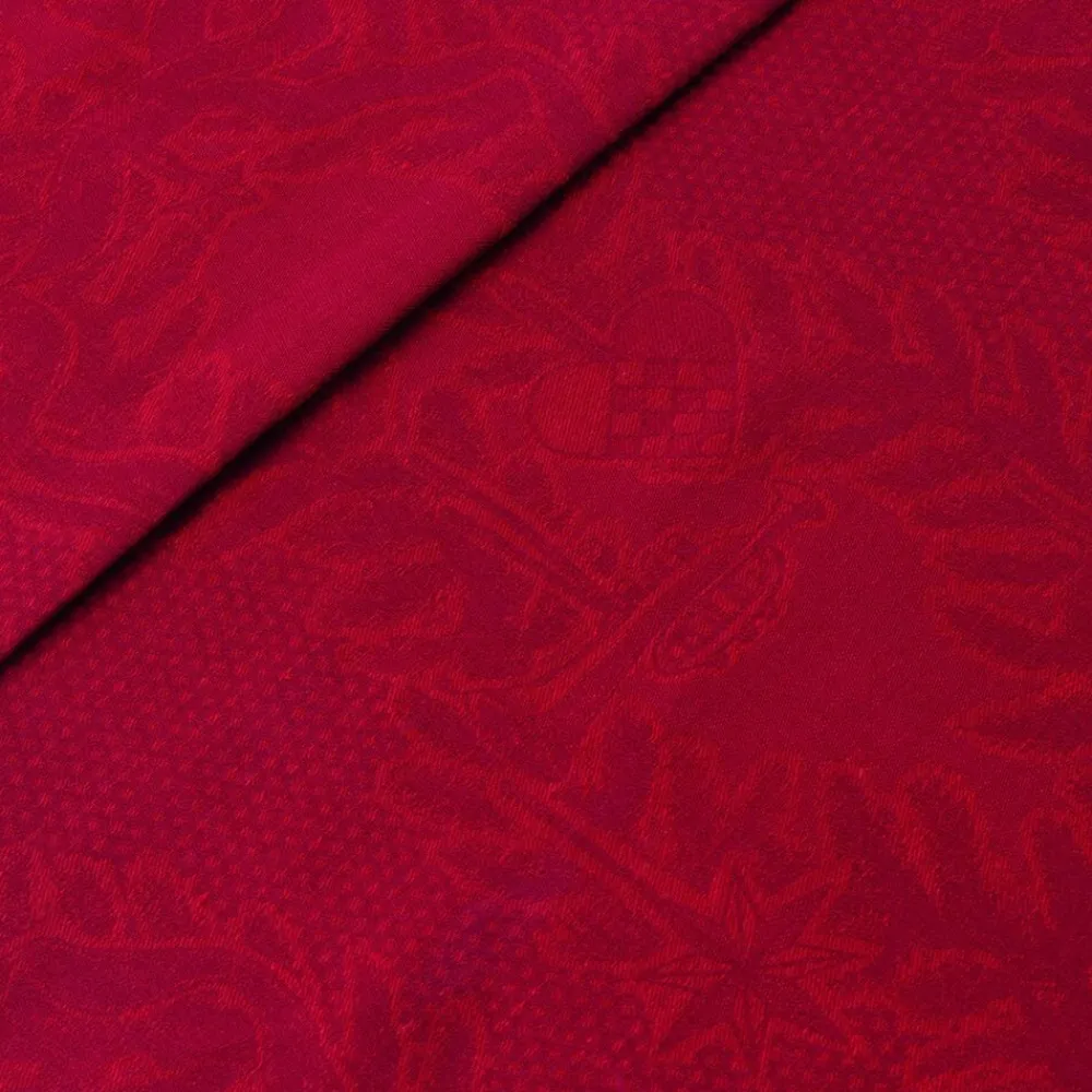 Tilføj ekstra magi til julebordet med den smukke dug i Stjerne Riflet Jul. Med inspiration fra det festlige stel er dugen dekoreret med stemningsfuld julepynt såsom stjerner, hjerter og bånd. Dugen er lavet i et hør- og bomuldsmix og er damaskvævet i en vidunderlig rød farve, der emmer af julehygge. Vælg mellem to størrelser.