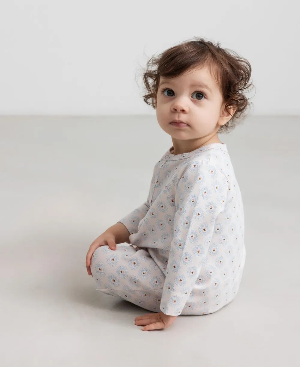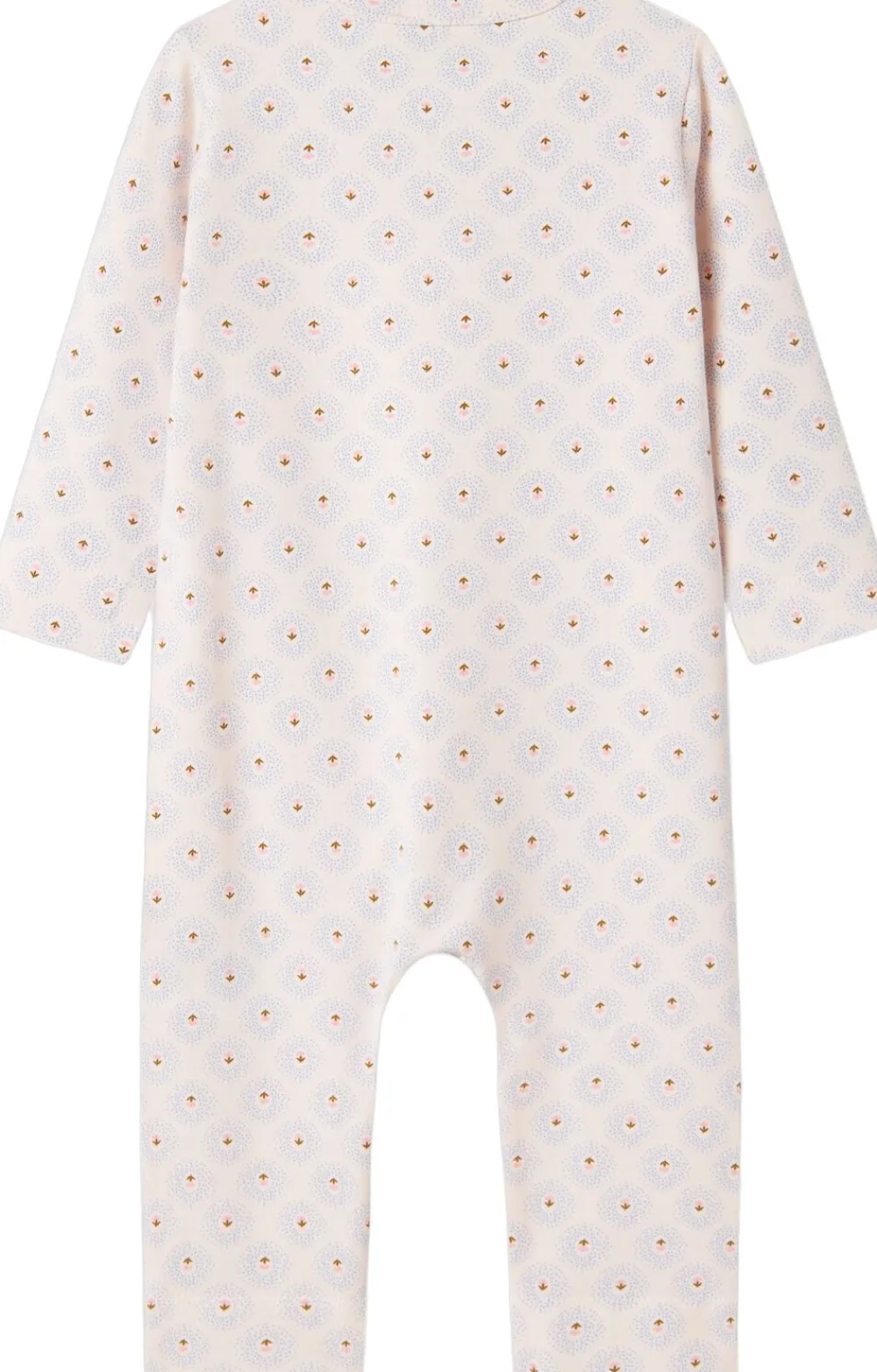 Langærmet baby modal bodystocking med stolpe knaplukning, der bliver lukket med trykknapper mellem benene for nem bleskiftning. Bodystockingen er både ribstrikket, blød, holder form og farve og har elastan i sig som gør den strækbar og behagelig at have på.