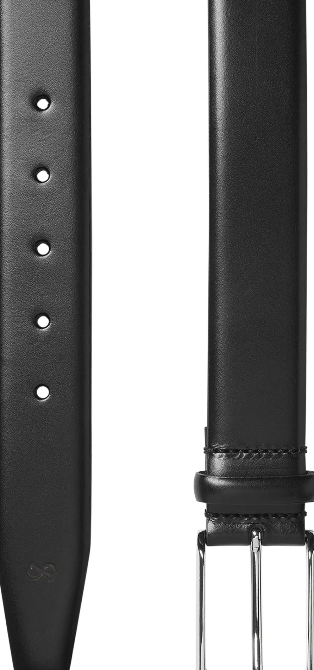 Klassisk bælte i læder fra SADDLER. 35mm bredt. Eksklusivt spænde i blank sølvfinish. God til business brug. Bæredygtigt produceret i Italien.