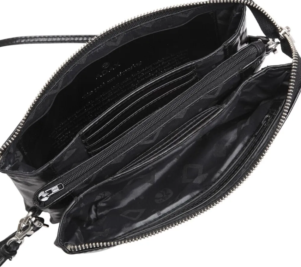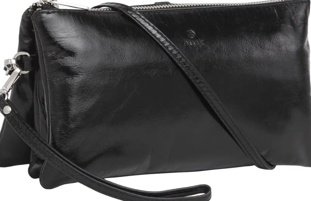 Adax combi clutch i Saerno kalveskind. Clutchen har flere gode rum og plads til mange kort. Fantastisk rummelig model. Den er opdelt i midten af et rum der lukke med lynlås – kan evt. bruges til mønterne. Clutchen lukkes med en lynlås. Den aftagelige håndledsrem kan evt. bruges til nøgler.Vi anbefaler at Salerno skindet plejes med Adax læder balsam.