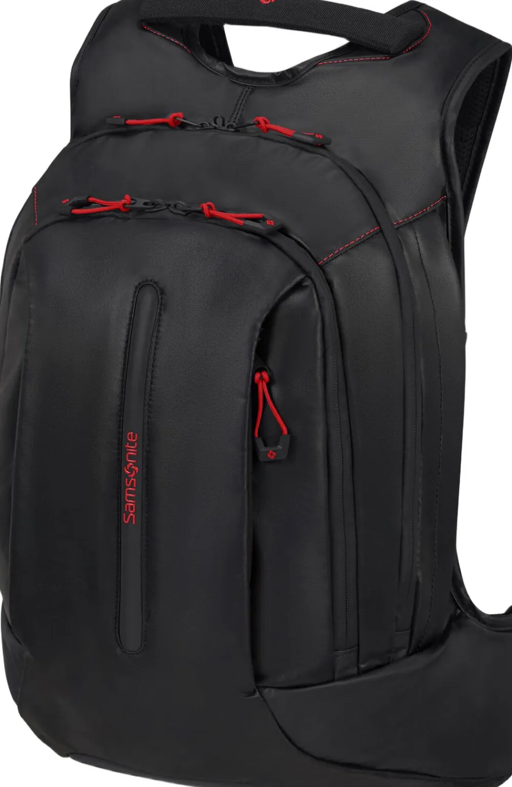 Rygsæk hvor både det udvendige og indvendige stof er lavet af genbrugt nylon og polyester, vandafvisende materiale, frontlomme med refleksdetaljer, ergonomiske stropper, brystrem, plads til 15,6″” pc og 10,5″” tablet, rumindhold 19 liter, vægt 0,9 kg.