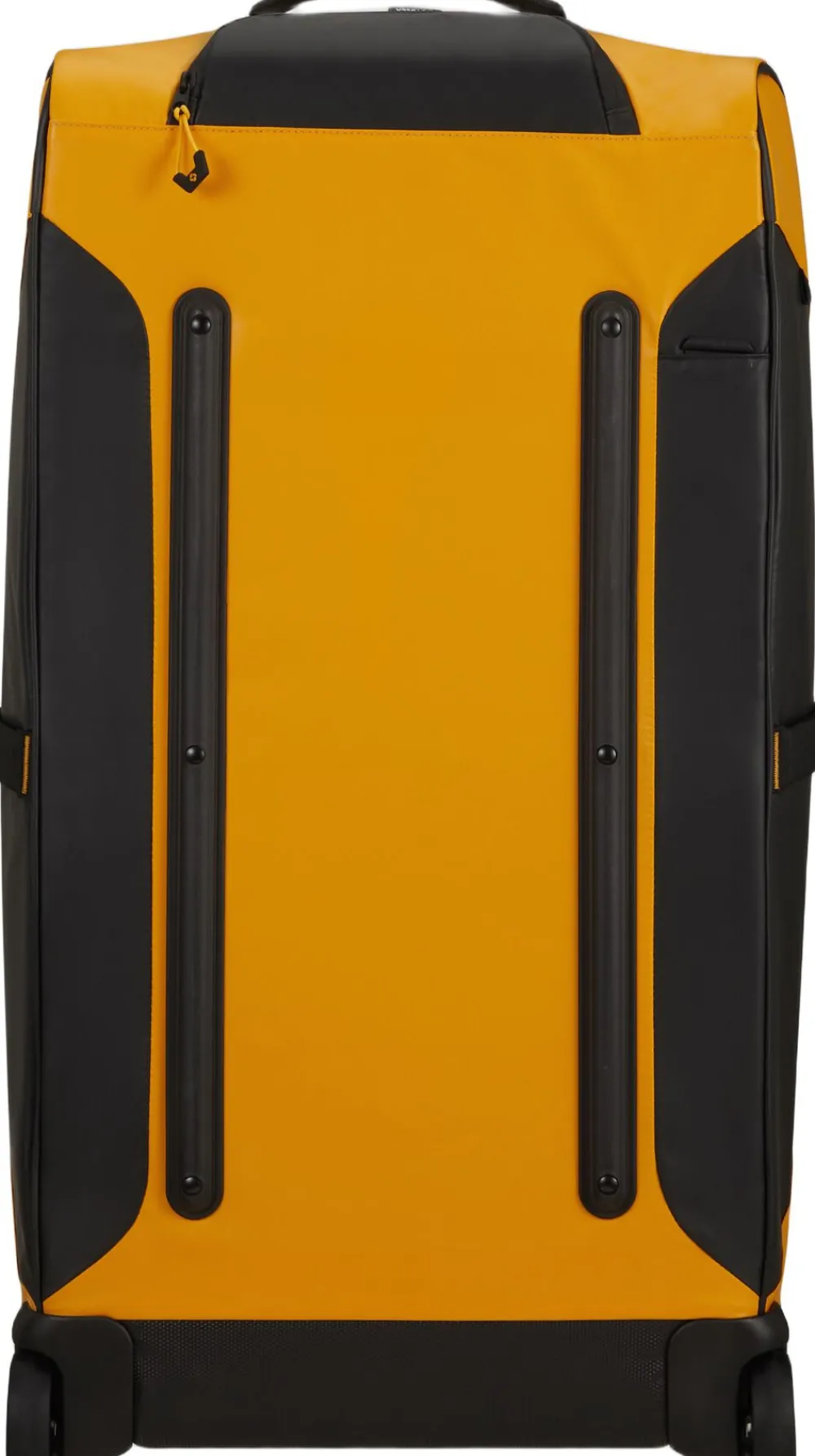 Duffle på hjul hvor både det udvendige og indvendige stof er lavet af genbrugt nylon og polyester, vandafvisende materiale, front og sidelomme, TSA lås, rumindhold 122 liter, vægt 3,4 kg. 5 års begrænset garanti.