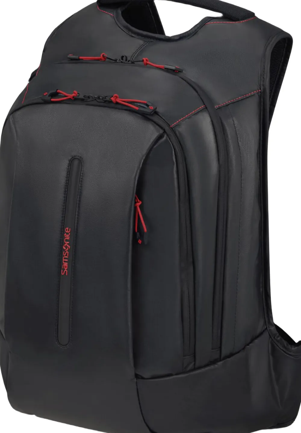 Rygsæk hvor både det udvendige og indvendige stof er lavet af genbrugt nylon og polyester, vandafvisende materiale, frontlomme med refleksdetaljer, ergonomiske stropper, brystrem, plads til 15,6″” pc og 10,5″” tablet, rumindhold 26 liter, vægt 1 kg.