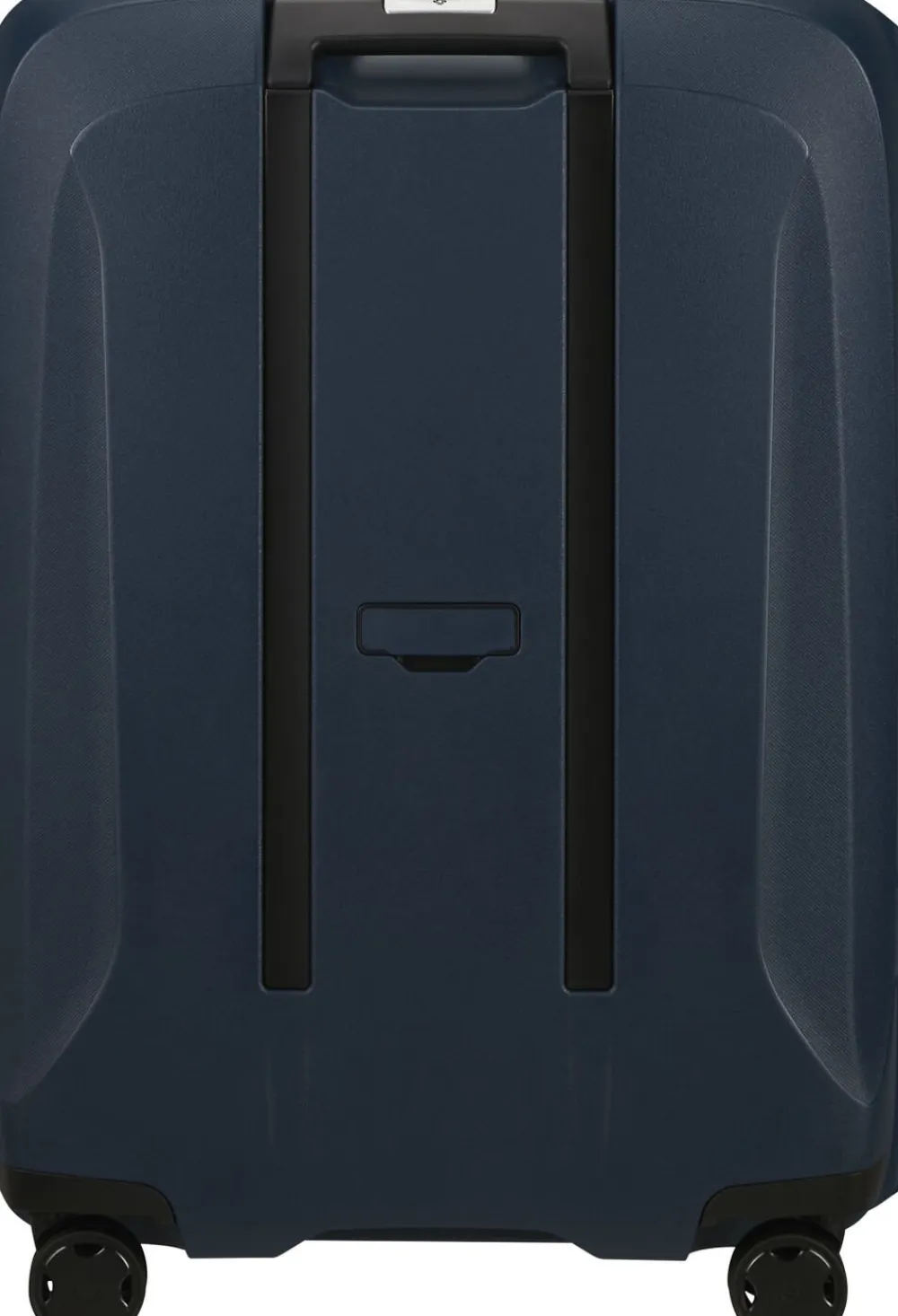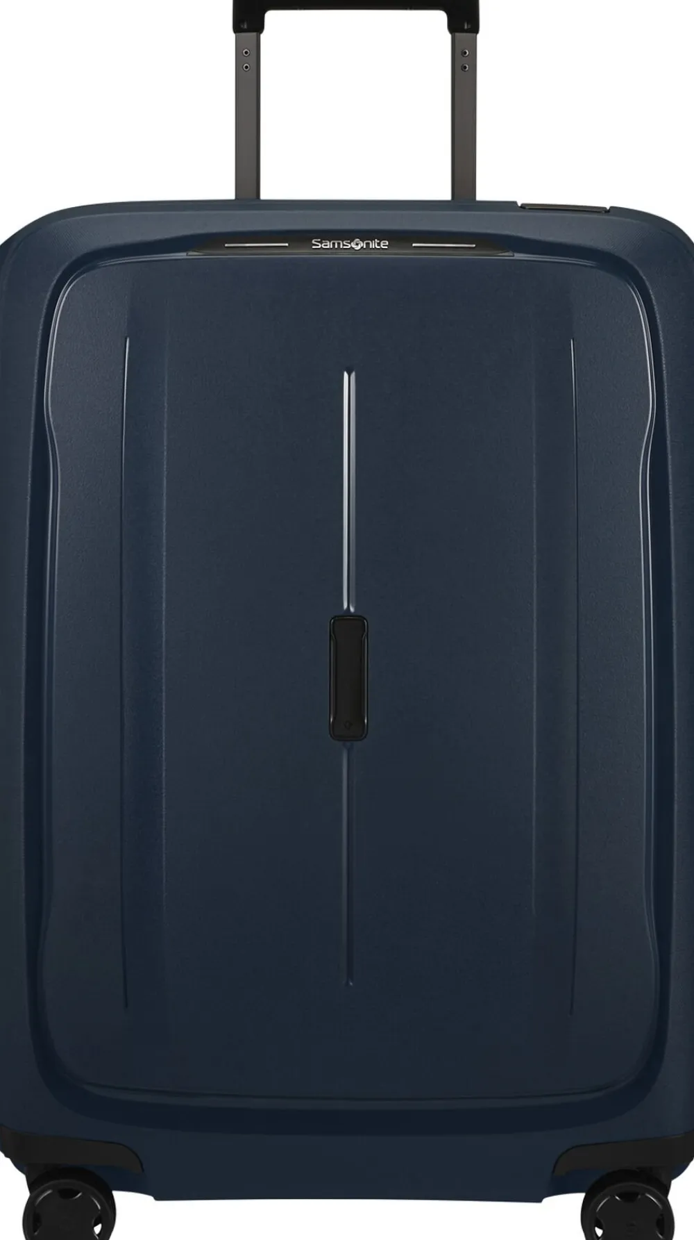 Kuffert med 4 hjul, lavet af minimum 70% genbrugt polypropylen, stoffet indvendigt er lavet af genbrugte pet flasker,3 punkts TSA lås, 2 aftagelige pakkeposer, dobbelt trollystativ, 3,7 kg,navneskilt,rumindhold 88 l, 5 års garanti 69x49x30