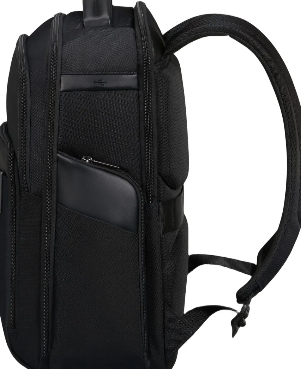 Computer rygsæk med plads til 15,6″ PC og 10,5″ tablet, både det indvendige og udvendige stof er lavet af genbrugsplast, flaskeholder i siden, mulighed for personalisering med de medfølgende stickers, frontlomme med lynlås, ergonomiske stropper, rumindhold 20,5 l, vægt 1,1 kg. 2 års garanti.