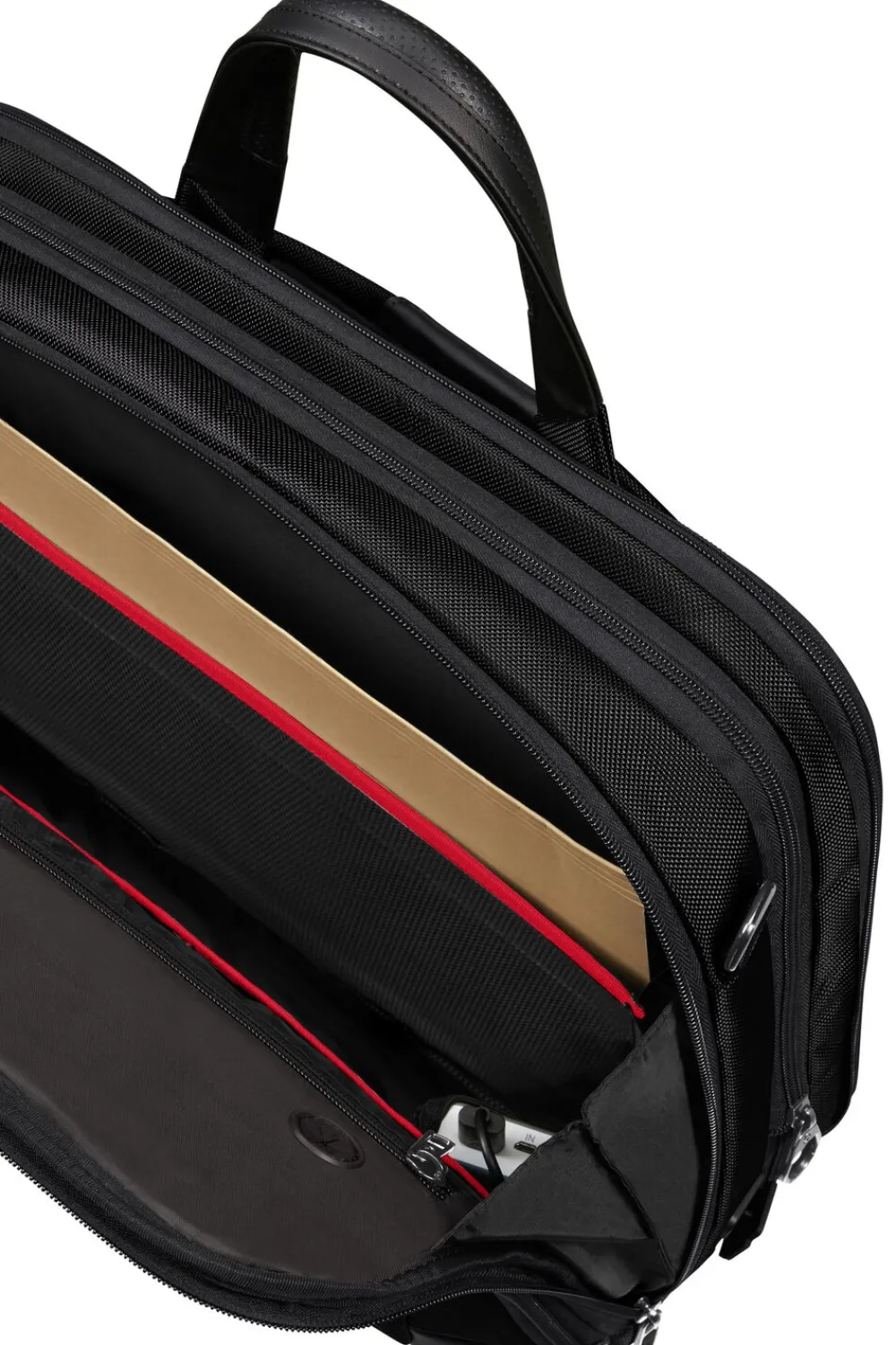 Computer taske i topkvalitet, lavet i balistisk nylon med skinddetaljer på håndtag, plads til 15,6″ PC og 10,5 ” tablet, indvendig stof lavet af genbrugsplast, skulderrem med foam, organisation i frontlomme, mulighed for udvidelse, smartsleeve funktion så den passer ovenpå din trolly, rumindhold 16/23 l, vægt 1,4 kg. 2 års garanti.
