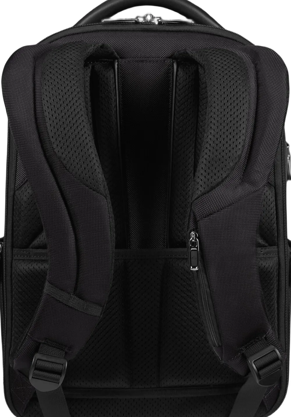 Computer rygsæk i topkvalitet, lavet i balistisk nylon med skinddetaljer på håndtag, plads til 14,1″ PC og 10,5″ tablet, indvendig stof lavet af genbrugsplast, ergomiske stropper, organisation i frontlomme, flaskeholder, smartsleeve funktion så den passer ovenpå din trolly, rumindhold 12,5 l, vægt 1,1 kg. 2 års garanti.