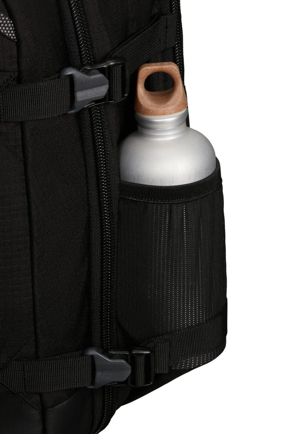 Computer rygsæk med plads til 14,1″ PC, både det indvendige og udvendige stof er lavet af genbrugsplast, passer til Ryan Air kabinemål 25x40x25 cm. flaskeholder i siden, frontlomme med lynlås, brystrem, ergonomiske stropper, rumindhold 26 l, vægt 0,7 kg. 2 års garanti.