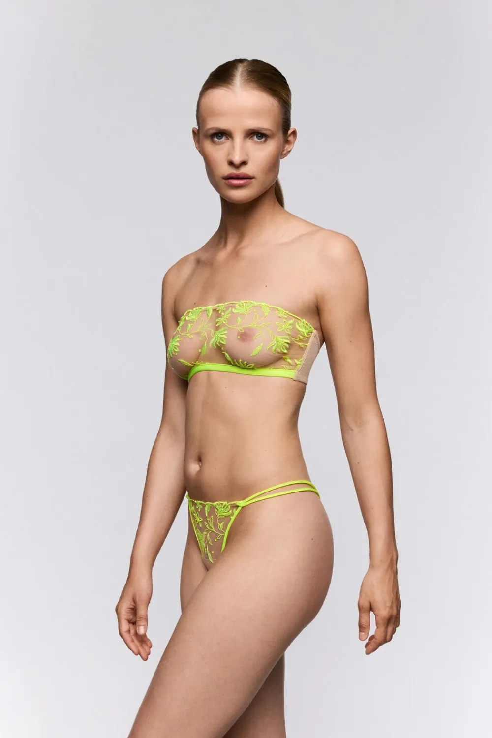 Shay bringer næsten-total gennemsigtighed og franske blomster med sig. Kristaller fuldender looket. Som et tatoveret glimt. Dristig, flirtende og umulig at ignorere. Det her er en bestseller i aktion.