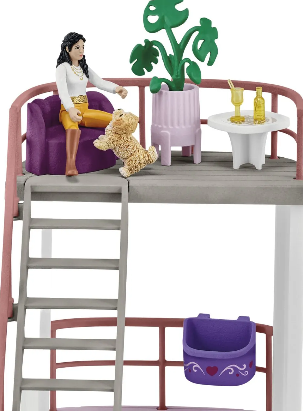 Pyh Med sådan et udvalg er det svært at vide, hvad man skal vælge staldfest, hestefødselsdag eller den første skoledag for det yngste føl Beauty-salonen fra Schleich HORSE CLUB Sofias Beauties har alt, hvad man kan drømme om til enhver hestebegivenhed Og takket være skrædderværkstedet kan alt tilbehør også laves efter mål Så små føl, sporty ponyer og stærke hingste kan stolt præsentere deres nye outfit på podiet Nedenunder er der en skuffe, hvor alt hårtilbehør, spænder og perler kan opbevares Vidste du, at du nemt kan udskifte og rede alle hestenes manke og hale? Ikke dårligt, vel? Og efter al den optræden fortjener dyrene masser af frisk hø i det hyggelige venteområde Der er endda kølig limonade Men det er kun til rytterne