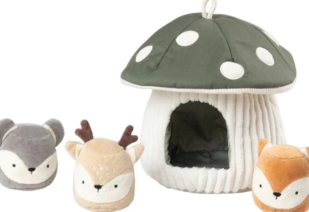 Paddehatten er ca. 20 cm høj og har en åbning i stokken, så de tre medfølgende dyr kan gemme sig inde i den. Hvert dyr har sin egen lydeffekt, og små fingre kan bruge meget tid på at få dem ind og ud af paddehatten under legen. Paddehatten er designet i Danmark med fokus på at styrke barnets finmotorik og nysgerrighed. Når legen er forbi, pynter den på børneværelset som en dekorativ detalje i afdæmpede nuancer.