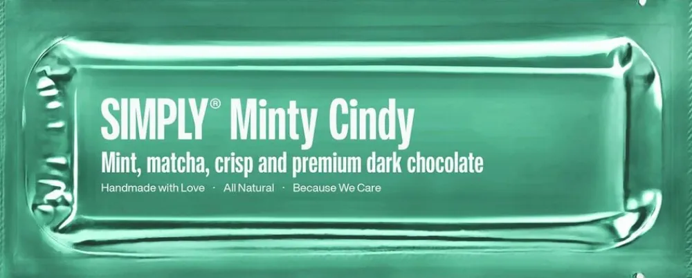MINTY CINDY – Cremet hvid chokolade rørt med sprøde kornflager, matcha & mint overtrukket med premium mørk chokolade. En ideel kombination af smagsoplevelser! Simply Chocolate er lavet på det bedste naturen har at tilbyde. Premium kvalitetschokolade og absolut ingen kunstige tilsætningsstoffer.