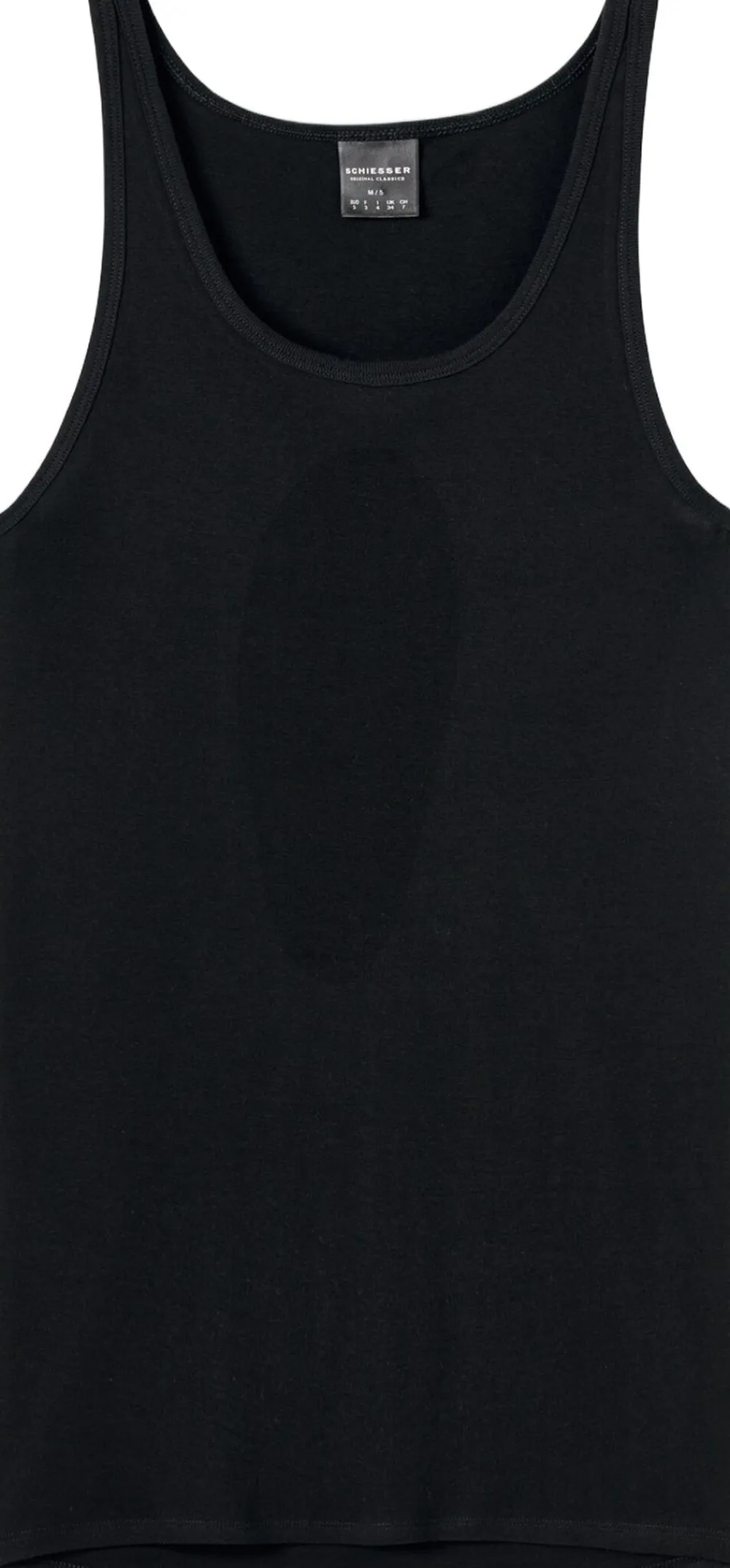 En ægte undertøjsoriginal: Denne sorte undertrøje fra SCHIESSER “Classics” -serien kombinerer behageligt, blødt materiale med bevist topkvalitet. Det fine ribmateriale i 100% superkæmmet bomuld af høj kvalitet føles umiskendeligt blødt mod Hud og giver optimal komfort uden generende sidesømme, sammen med den længere ryg. Ideel til Herre, der sætter pris på klassisk hverdagstøj med en perfekt pasform!