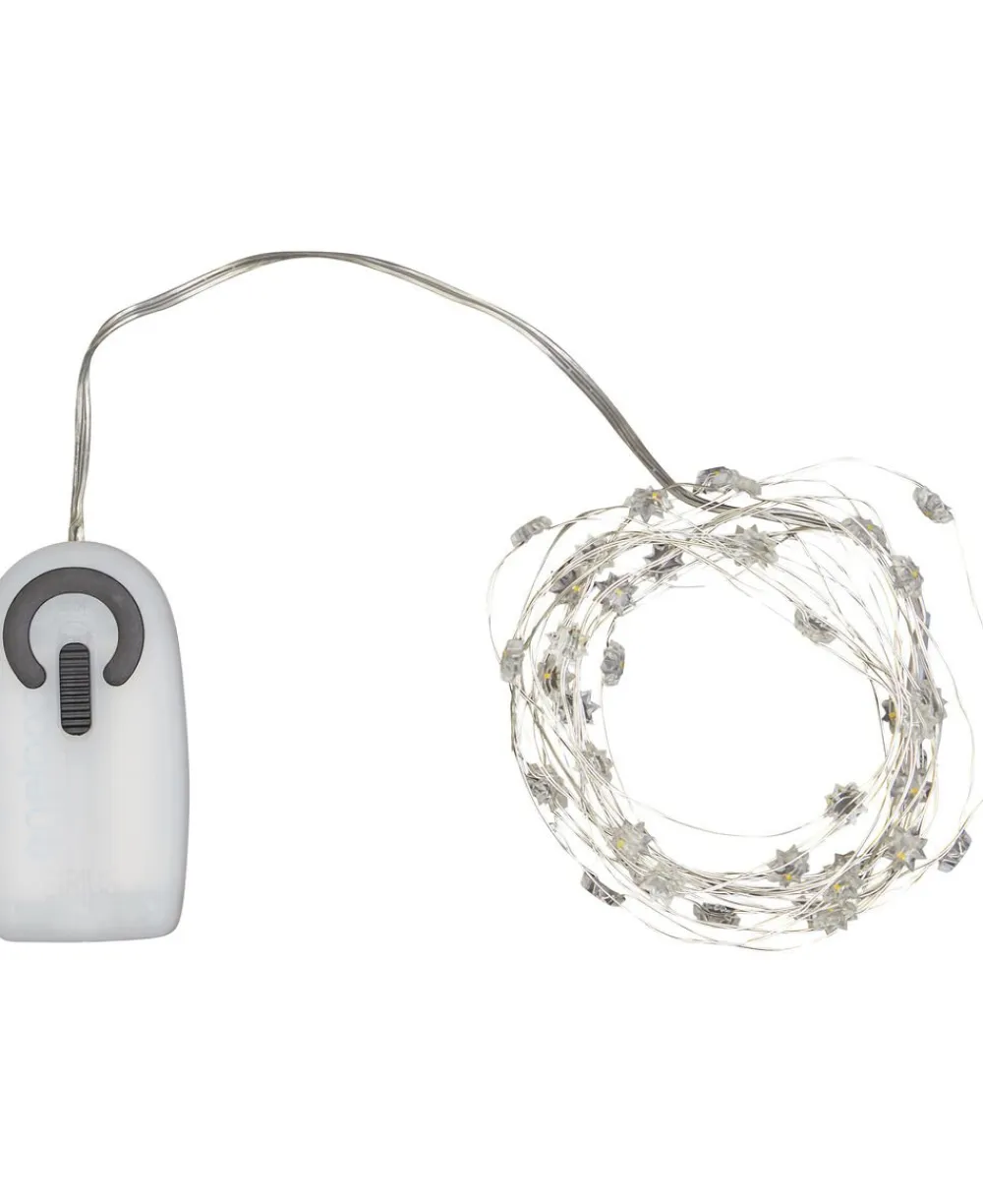Sirius Lyskæden Silke har 40 meget små fine (0,5 cm) LED lys. På kæden er der påsat 40 små (1cm) klare blomster. Kæden er lavet med en fin sølvtråd der er snoet rundt om den transprarente ledning. Meget dekorativ kæde. Kæden er 3,9 meter lang, og har et varmt naturligt lys. Dekorationen er batteridrevet og har en indbygget timerfunktion, der slukker lyset automatisk efter 6 timer, hvis du ikke selv slukker dem. Efter 18 timer tænder lyset igen, og sådan vil det fortsætte, hvis du ikke bruger sluk knappen. Batterier medfølger ikke. Der skal isættes 2 AA Batterier. Kan kun benyttes indendørs.