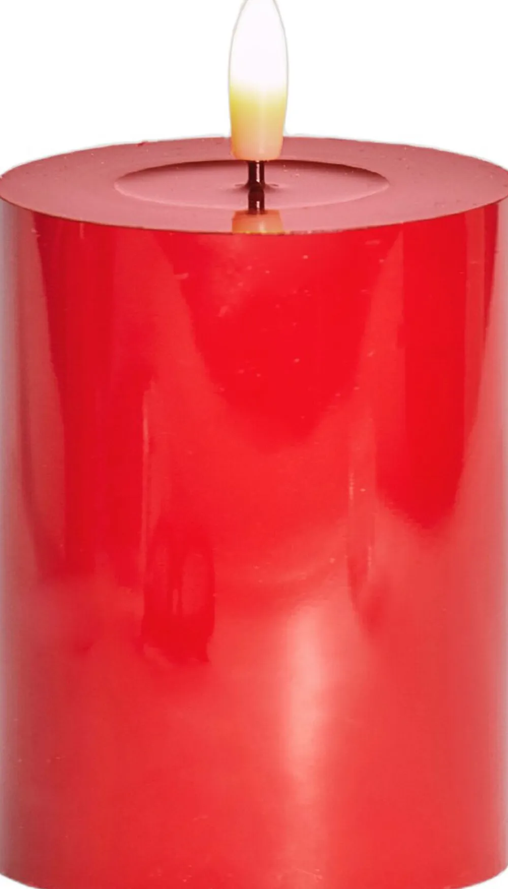 LED lak bloklys med 3D flamme der lyser med et varmt hvidt lys