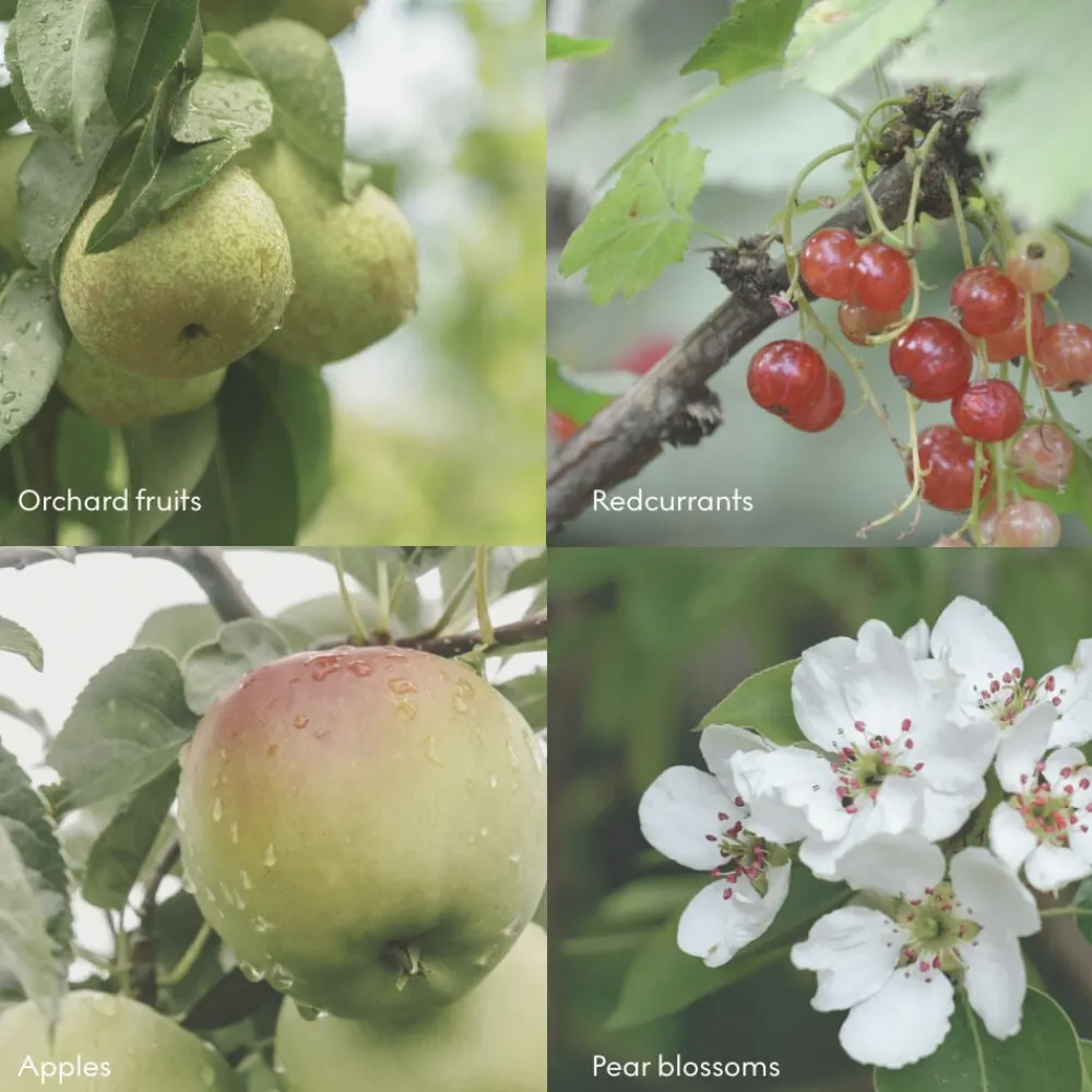 Duftnoter: Æble og Pæreblomster, frugt fra plantager og ribs.