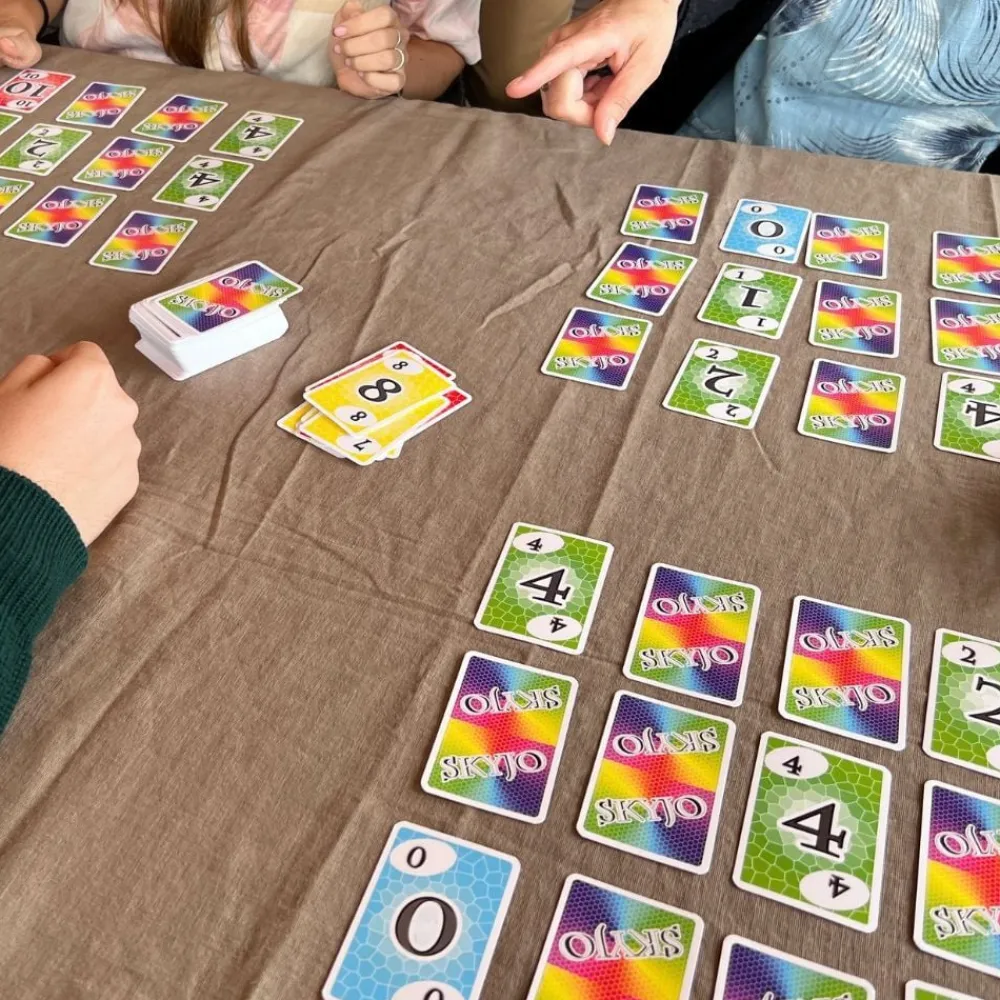 Sjovt familekortspil fra 6år Hver spiller har 12 skjulte kort (3×4). To vendes med billedsiden opad. På din tur kan du tage det øverste kort fra enten kassestakken eller trækkebunken Du kan bytte ét af dine kort (skjult eller åbent) i din opstilling. Runden slutter, når en spiller kun har åbne kort (alle får lige mange ture). Alle kort afsløres, og pointene beregnes ved at lægge kortenes værdier sammen. Spillet slutter, når en spiller når 100 eller flere point. Spilleren med færrest point vinder.