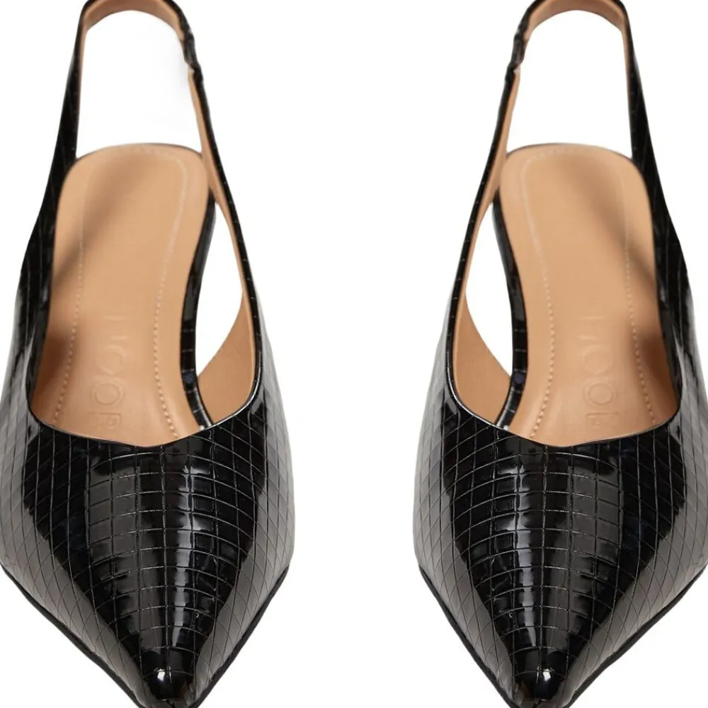 • Slingback-stilet • Spids tå • Blank overflade med ternet prægning • Elastisk rem bagpå • 7 cm høj hæl • 100 % læder, 100 % gummi