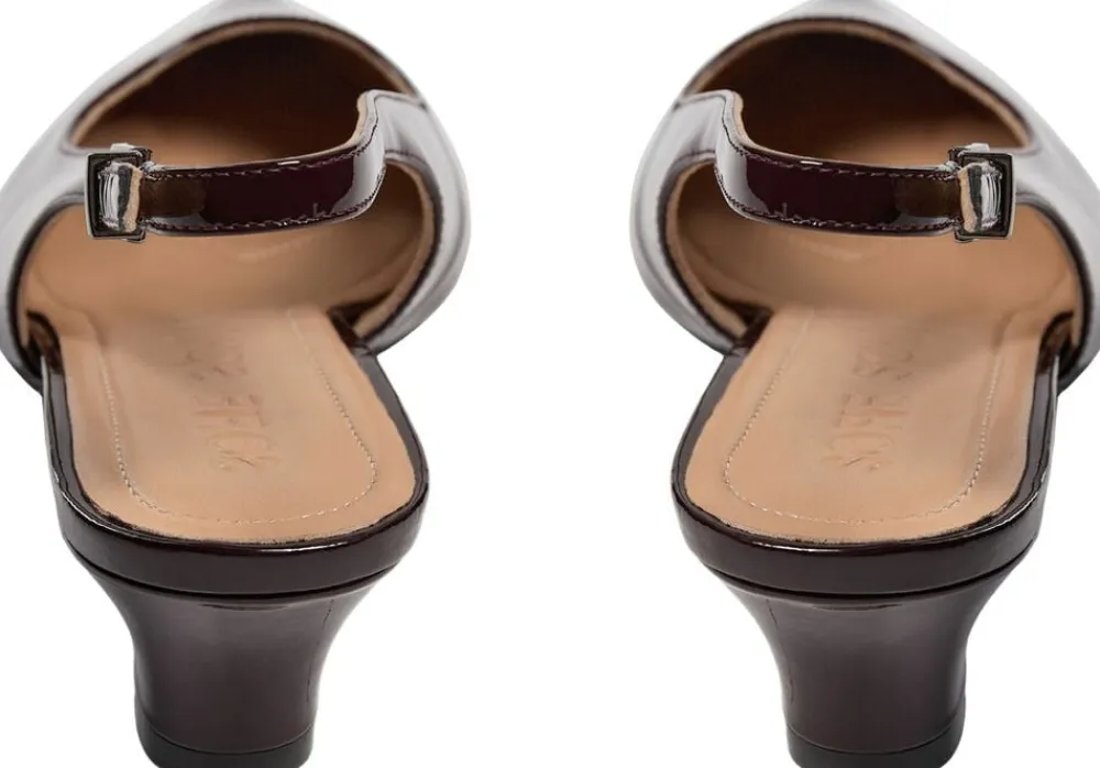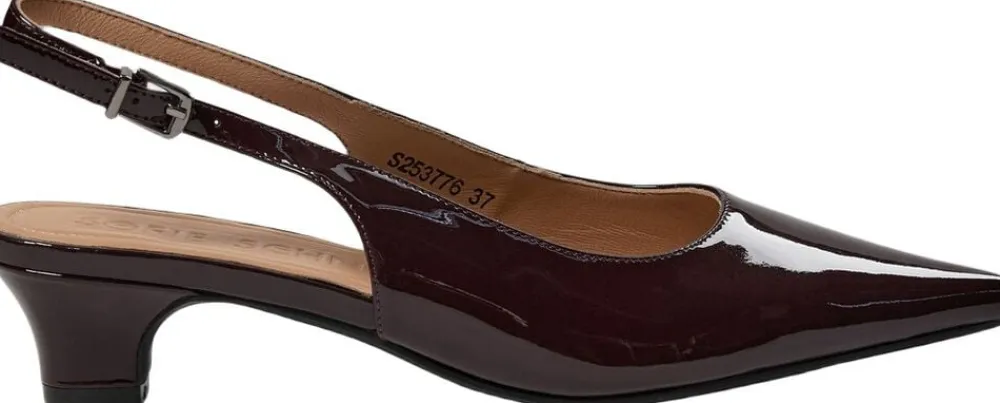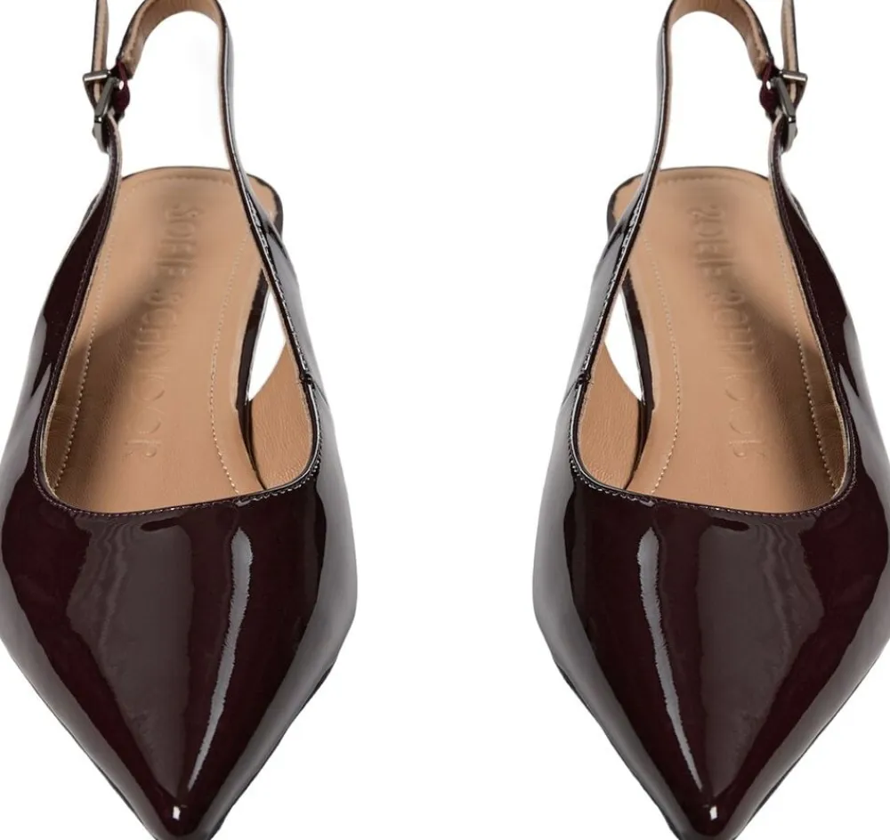 Slingbacks” Sko med spids tå og hæl. Med justerbar spændestrop ved anklen. Lavet af 100 % læder