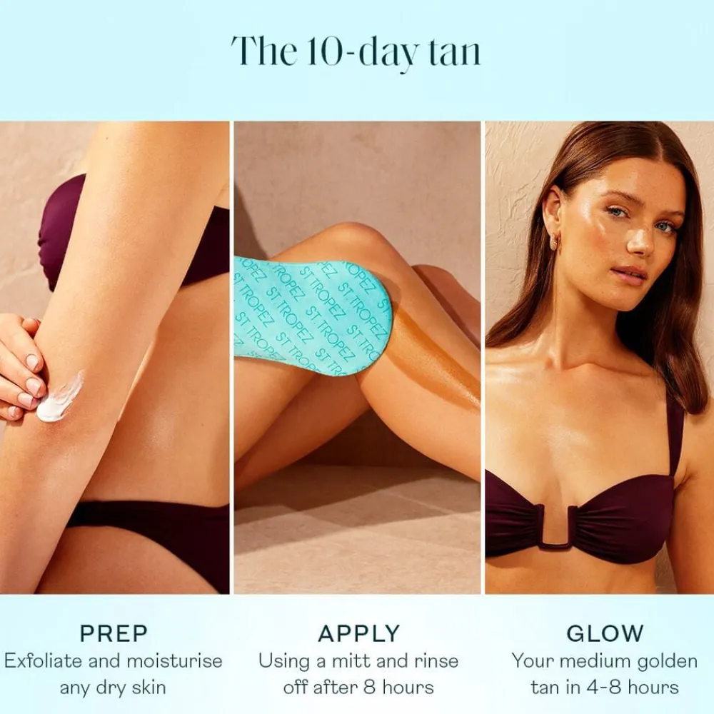 St. Tropez’s ikoniske Self Tan Classic Bronzing Mousse er en tonet hurtigtørrende mousse, der giver en jævn gylden solbrun hudtone uden at afsløre striber. Den er nem at påføre og den naturlige guidefarve giver dig en øjeblikkelig flot farve, mens farven i hudcellerne tydeligt udvikler sig. Vores Intelligent Tanning System-teknologi betyder, at farven tilpasser sig din egen hudtone, holder længere og falmer jævnt. Moussen har en vidunderlig opløftende duft udviklet af parfumehuset Givaudan, som effektivt skjuler solbrun-uden-sol-duften, også i udviklingsperioden! Velegnet til alle hudtoner og er fugtgivende i op til 24 timer. 100% vegansk.