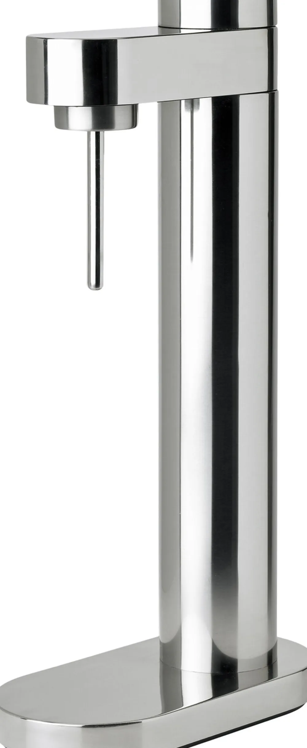 Med Brus kulsyremaskine sparer du miljøet for store mængder af unødigt plast ved at lave din egen danskvand eller sodavand i genanvendelige flasker. Designet af sodavandsmaskinen er så elegant, at du kan glæde dig over at have den stående fremme på køkkenbordet. Designeren bag, Søren Refsgaard er kendt for sit rene funktionelle design, hvor alt overflødigt er skåret væk. Det er Brus et særdeles godt eksempel på. Designet trækker på de cylindriske former, der er klassisk for Steltons design. Den cylindriske form ses først og fremmest i den ultraslanke beholder til kulsyrepatronen og går igen i kulsyreknappen, der intuitivt drejes med uret for at tilpasse mængden af kulsyre og drejes kontra, når flasken skal løsnes fra maskinen. Brus kulsyremaskine leveres med et styk Brus flaske.