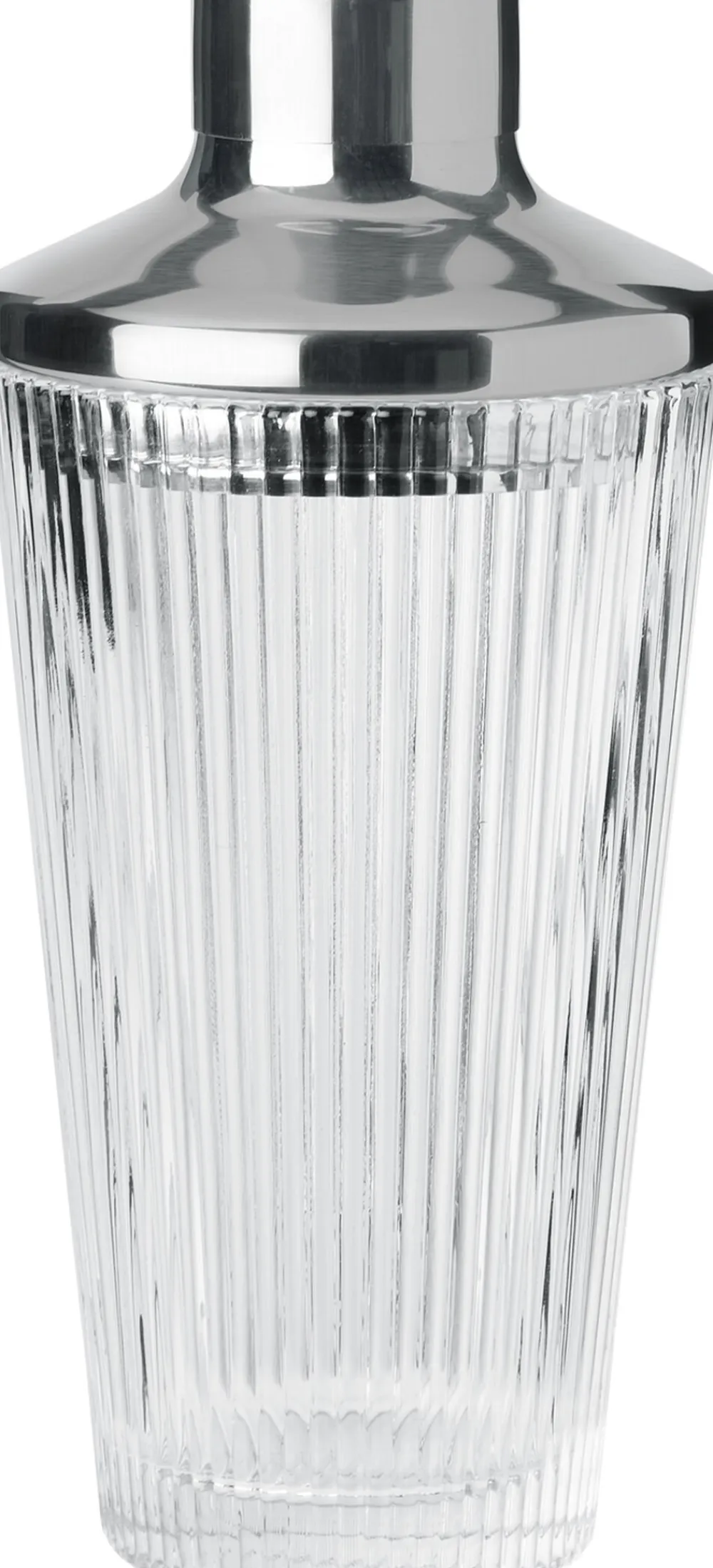 En shaker, der med sit riflede glas og blanke stål både gør sig godt som dekorativt element på barbordet, og samtidig er eminent til at fremtrylle lækre cocktails. Formen tager afsæt i den traditionelle Manhattan shaker, der består af tre dele: en beholder, et filter og et låg. Låget er skabt, så det også kan bruges som målebæger og indeholder 2 cl. Design og funktion går således hånd i hånd i denne cocktail shaker. Dimensionerne i udformningen gør den let at håndtere, når der skal shakes drinks i hjemmebaren. Størrelsesmæssigt fungerer den også, når der kun skal laves en enkelt drink ad gangen. Som med resten af Pilastro-serien, har designer Francis Cayouette ladet sig inspirere af 1920ernes elegante og funktionelle Art Déco stilretning i udformningen af Pilastro shakeren.