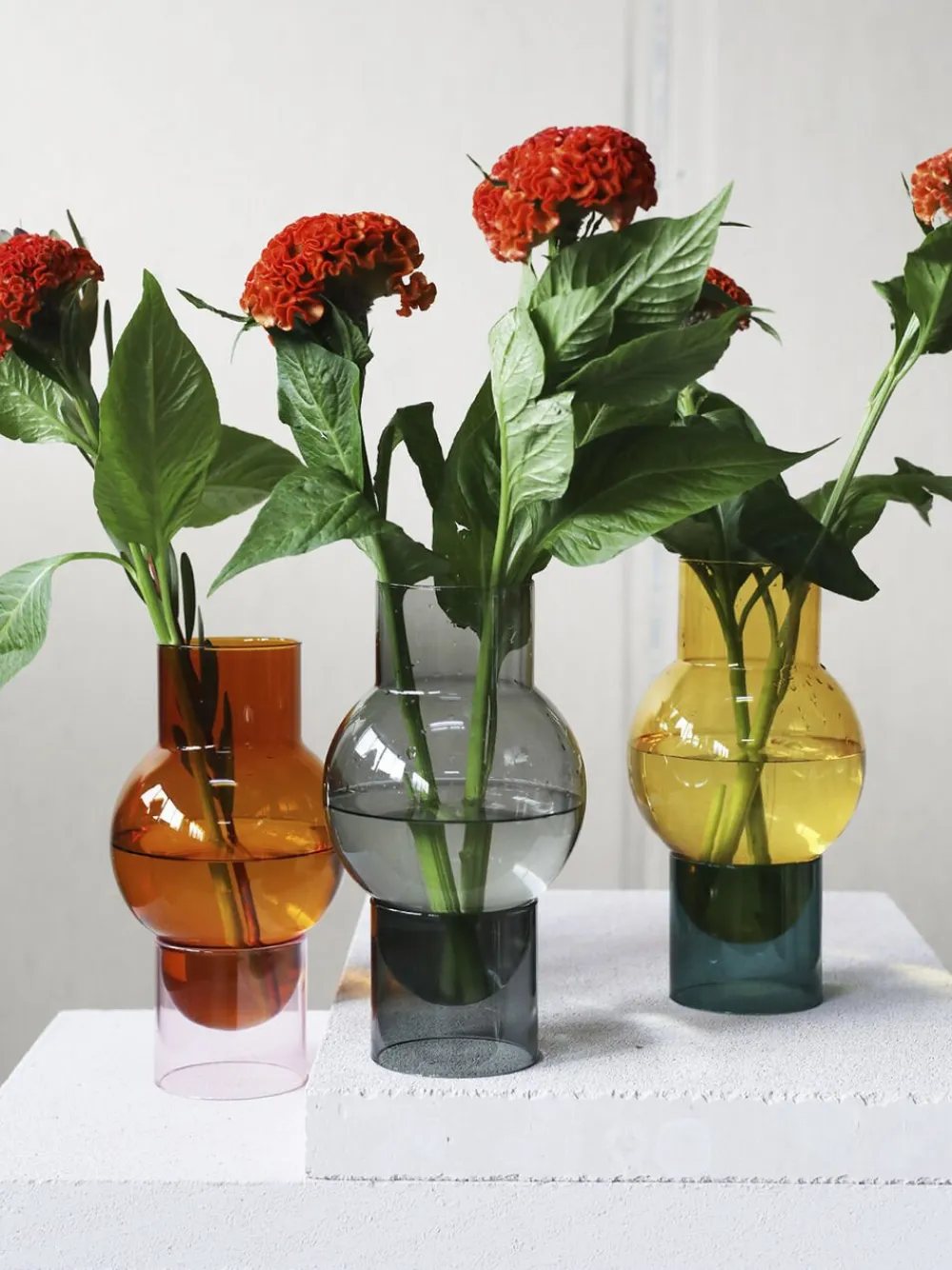 MODEL: ROSE TUBE + AMBER BUBBLEBubble Tube kollektionen er en serie af håndlavede glasvaser designet til en større buket. Glasvasen fås her i en rav farvet bubble. Den elegante vase hviler i en cylinderformet fod af rosa farvet glas og giver vasen en lethed og et feminint udtryk. MÅLÅBNING Ø90mmBOBLEN Ø150mmTOTAL HØJDE H270mmVasen er designet af arkitekt Mikkel Lang Mikkelsen.