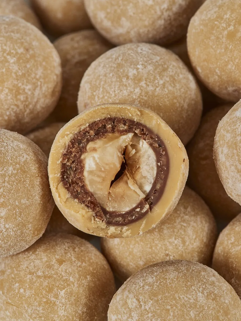Let ristede økologiske Piemonte-hasselnødder, drageret i nougat, knust krokant og omsluttet af et tykt lag af Amber Classic-chokolade. En hasselnød med dybde fra den karamelliserede Amber Classic-chokolade, sødme fra den knuste krokant og umami fra de sprøde Piemonte-hasselnødder.